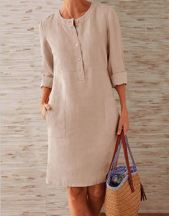 Women's Summer Retro Solid Color Linen Mid-length Shirt Loose Half-sleeved Half-Open Collar Dress$23.99 USDDescribe your product