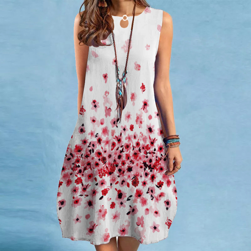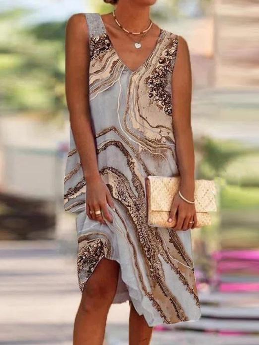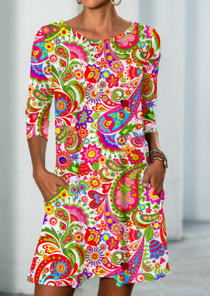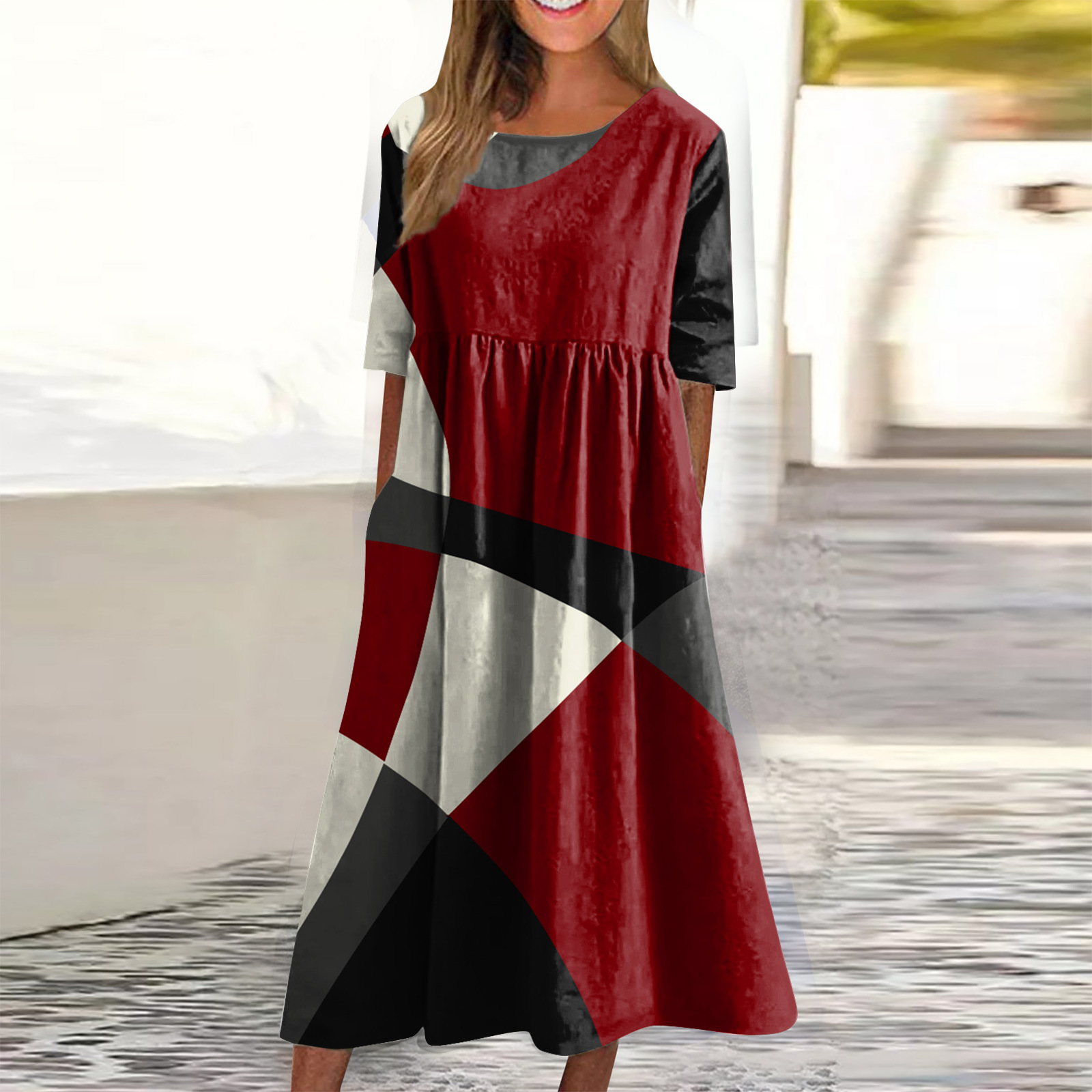 Geometric Contrasting Color Round Neck Short Sleeve Casual Loose Long Dress$27.99 USDDescribe your product