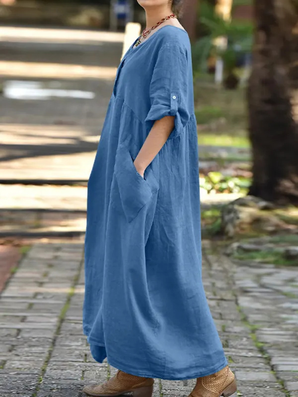 Women's Casual Loose Dress Long Sleeve Round Neck Pocket Cotton Linen Dress$32.99 USDDescribe your product