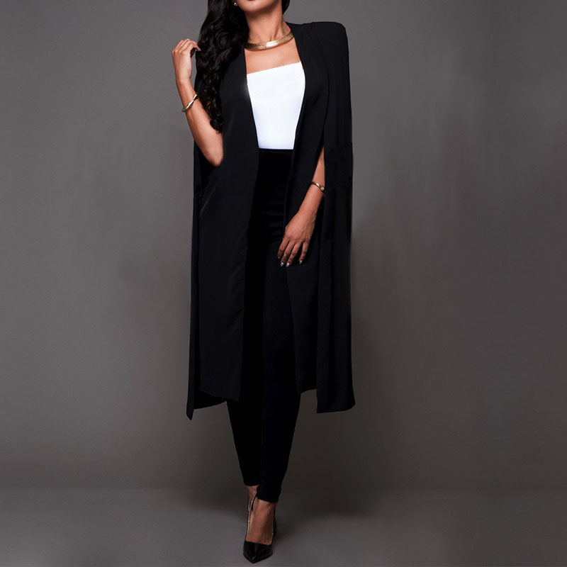 Solid Color Cloak Capes Long Sleeve Blazer Work Plain Business Jackets Casual Open Front Outwear$28.99 USDDescribe your product