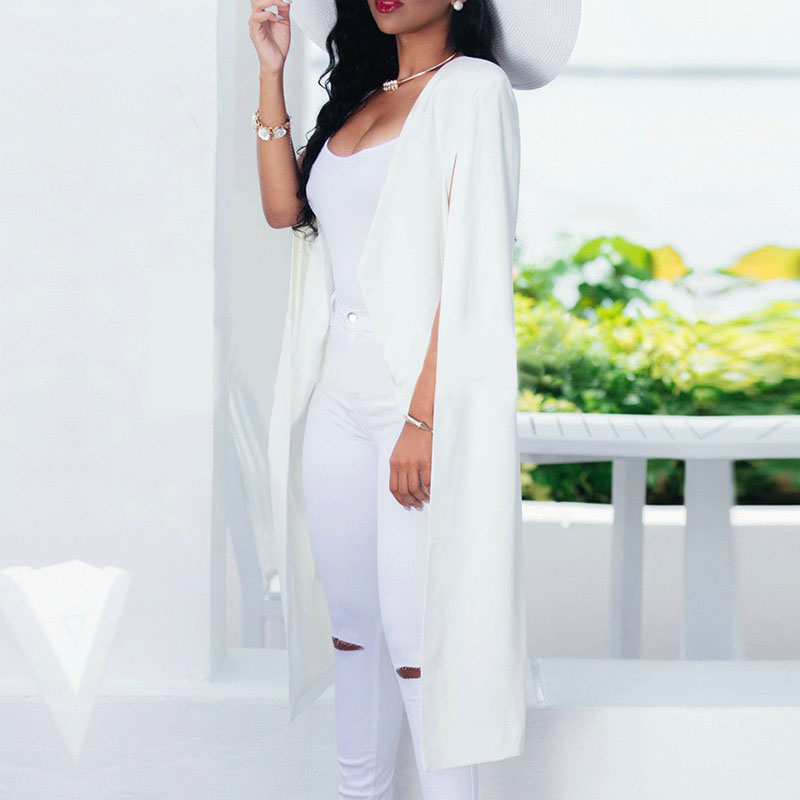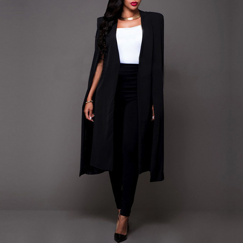 Solid Color Cloak Capes Long Sleeve Blazer Work Plain Business Jackets Casual Open Front Outwear
