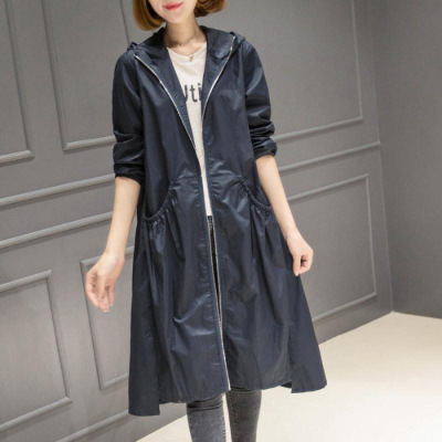 Women's Hooded Mid-length thin Sunscreen Windbreaker