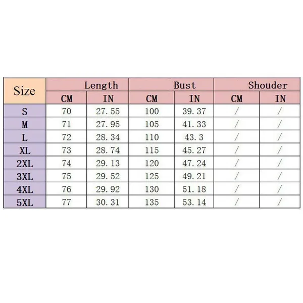 Size:S, M, L, XL, XXL, 3XL, 4XL, 5XL (Follow the size chart to select please)