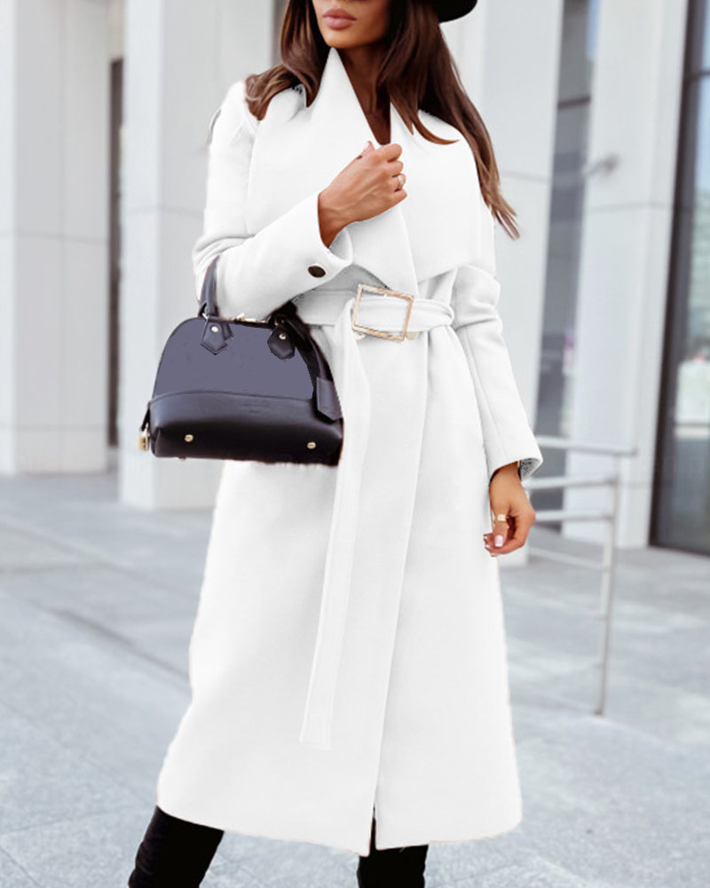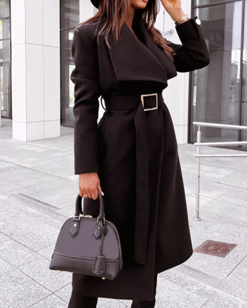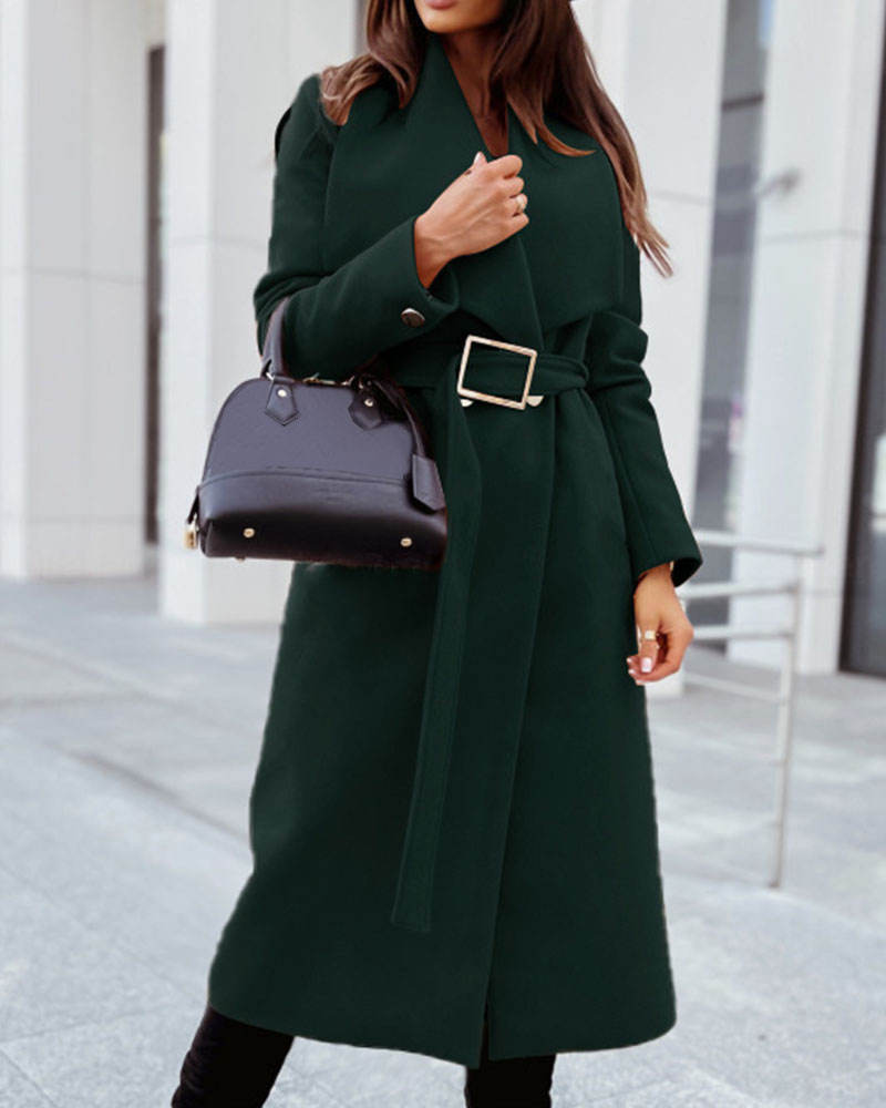 Simple Long Sleeve Button V Neck Tie Coat