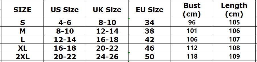 Size chart: