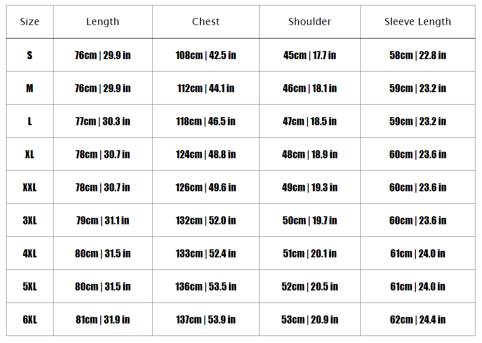 Size chart: