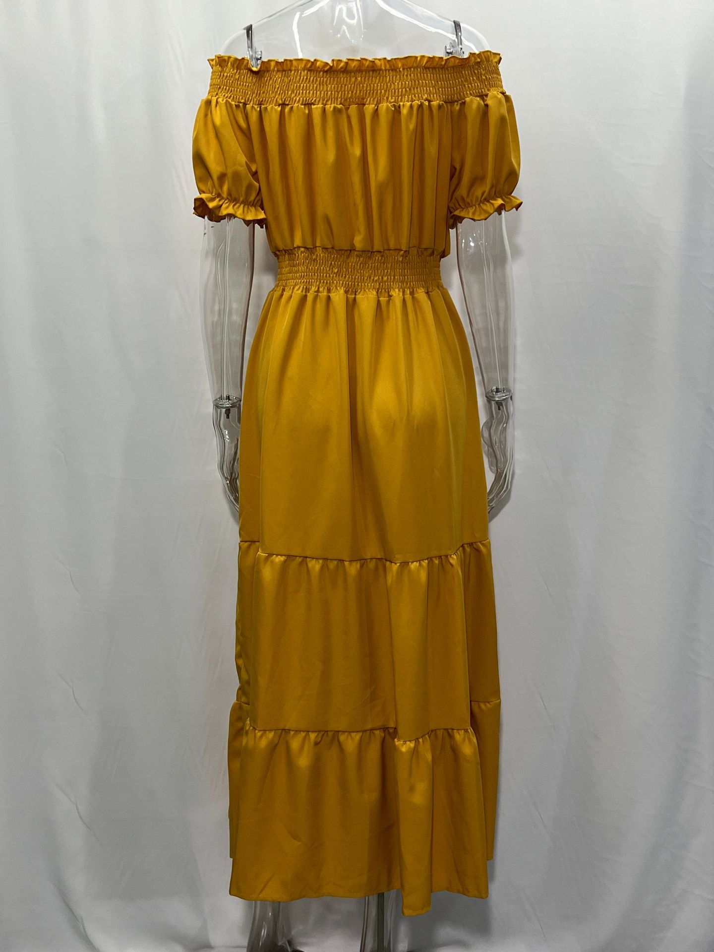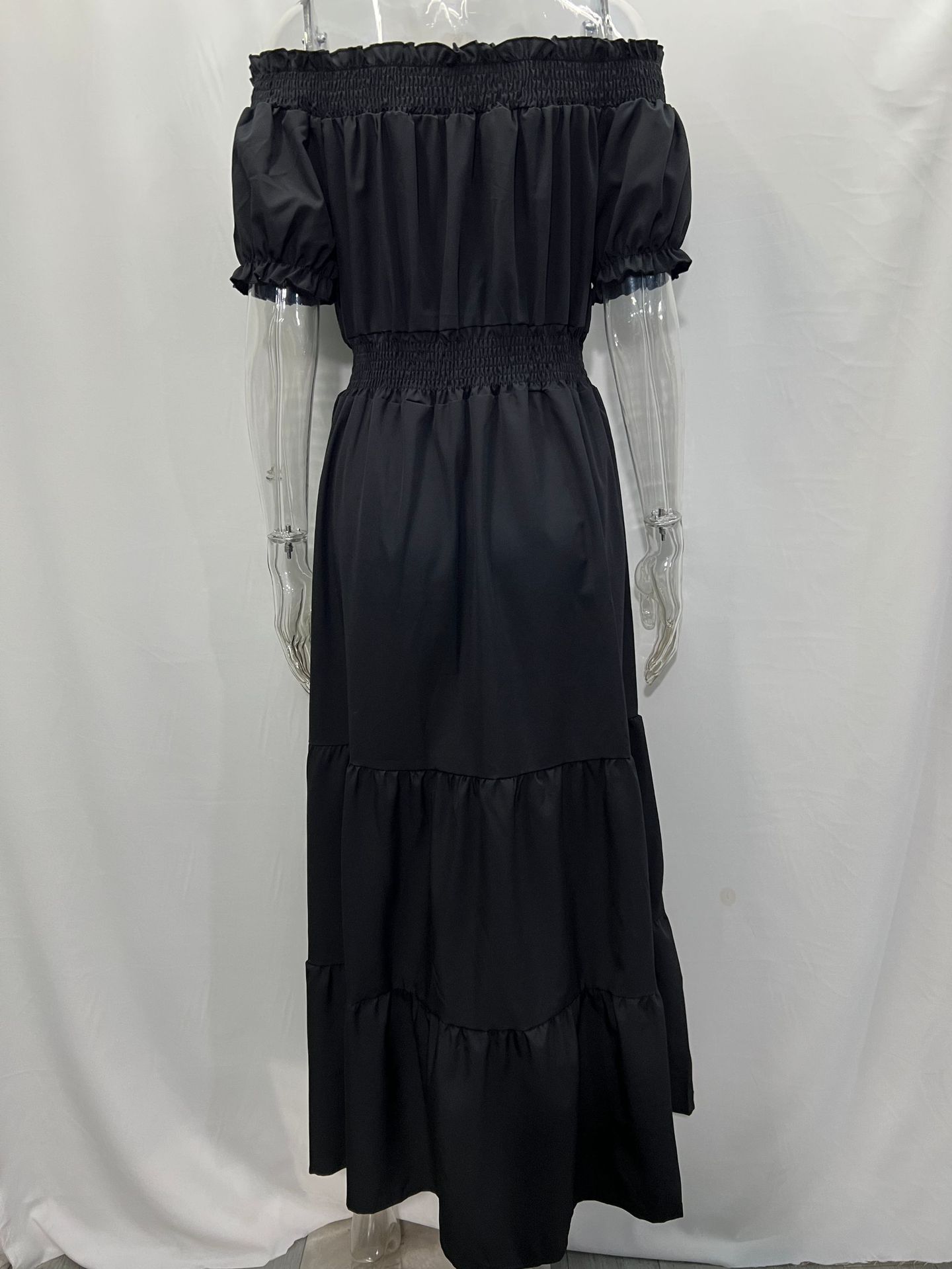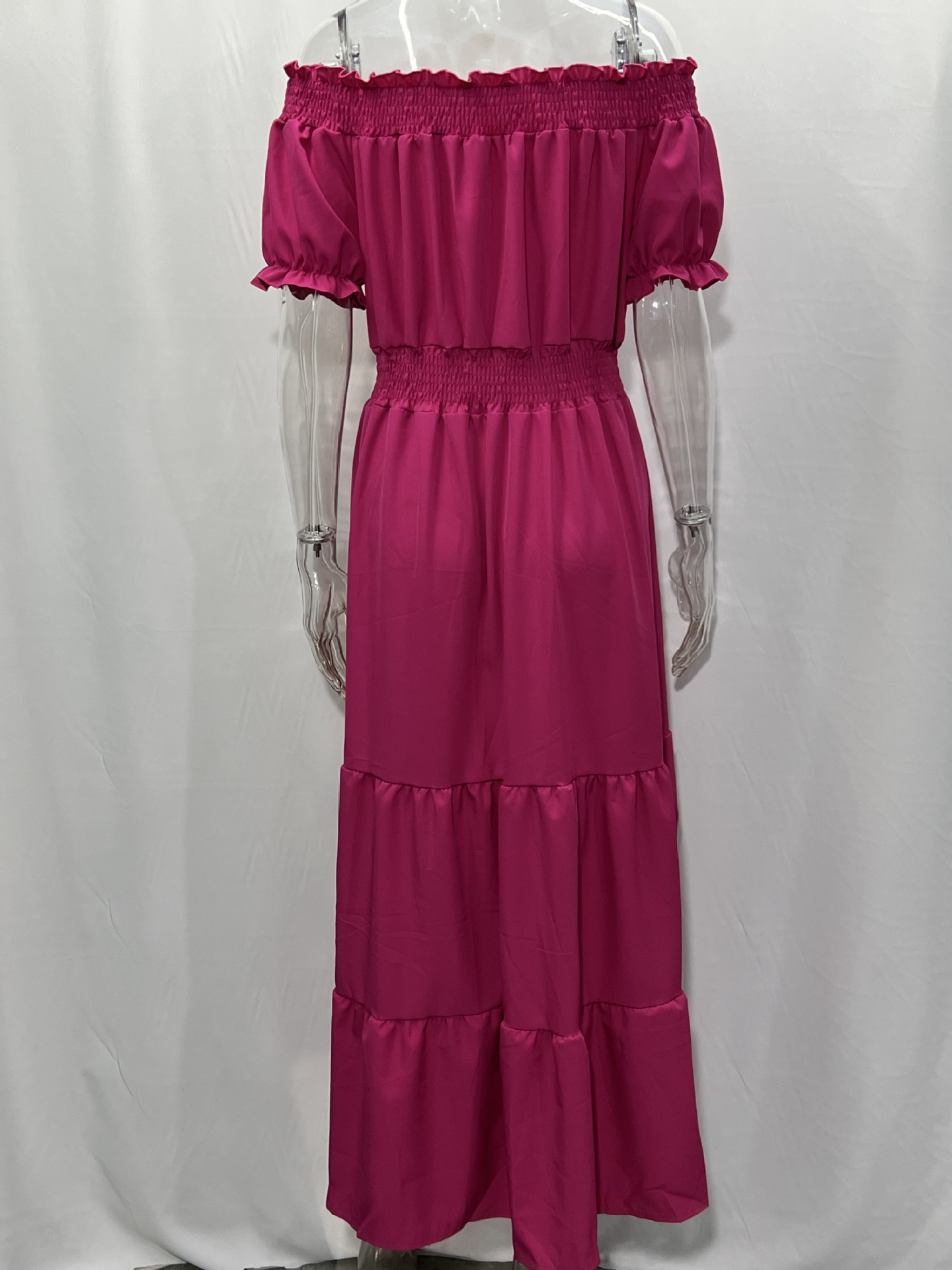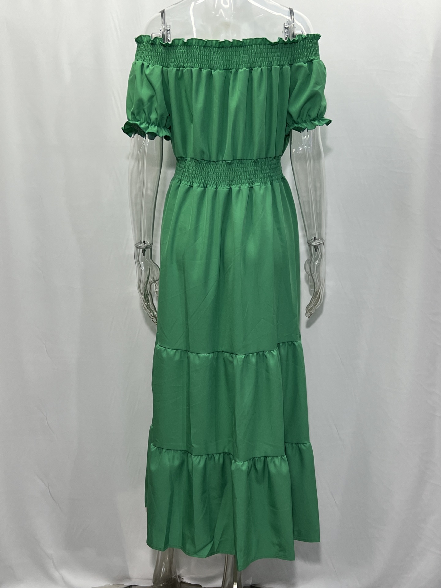 Elegant Solid Color Boat Neck Short Sleeve Long Dress