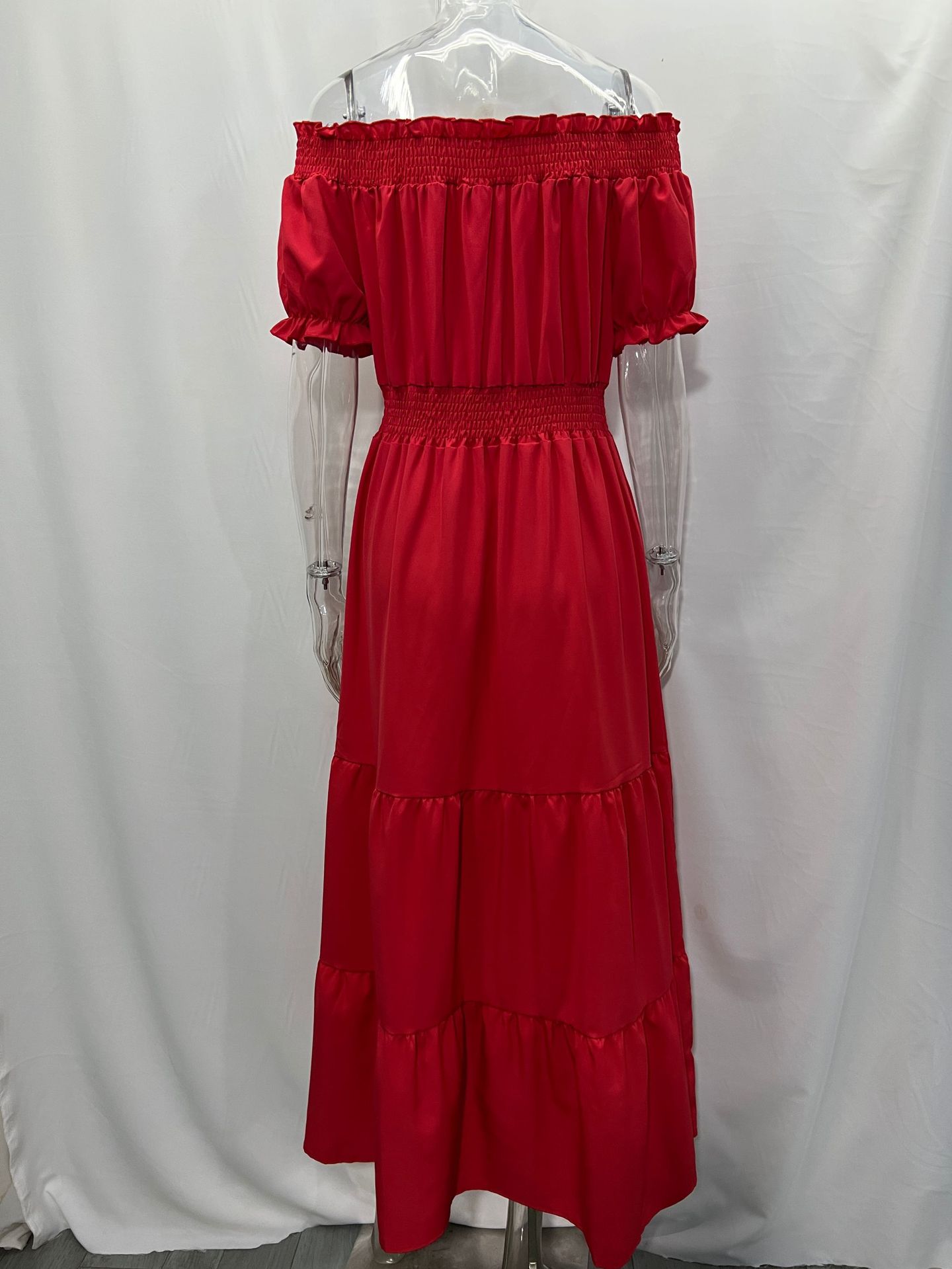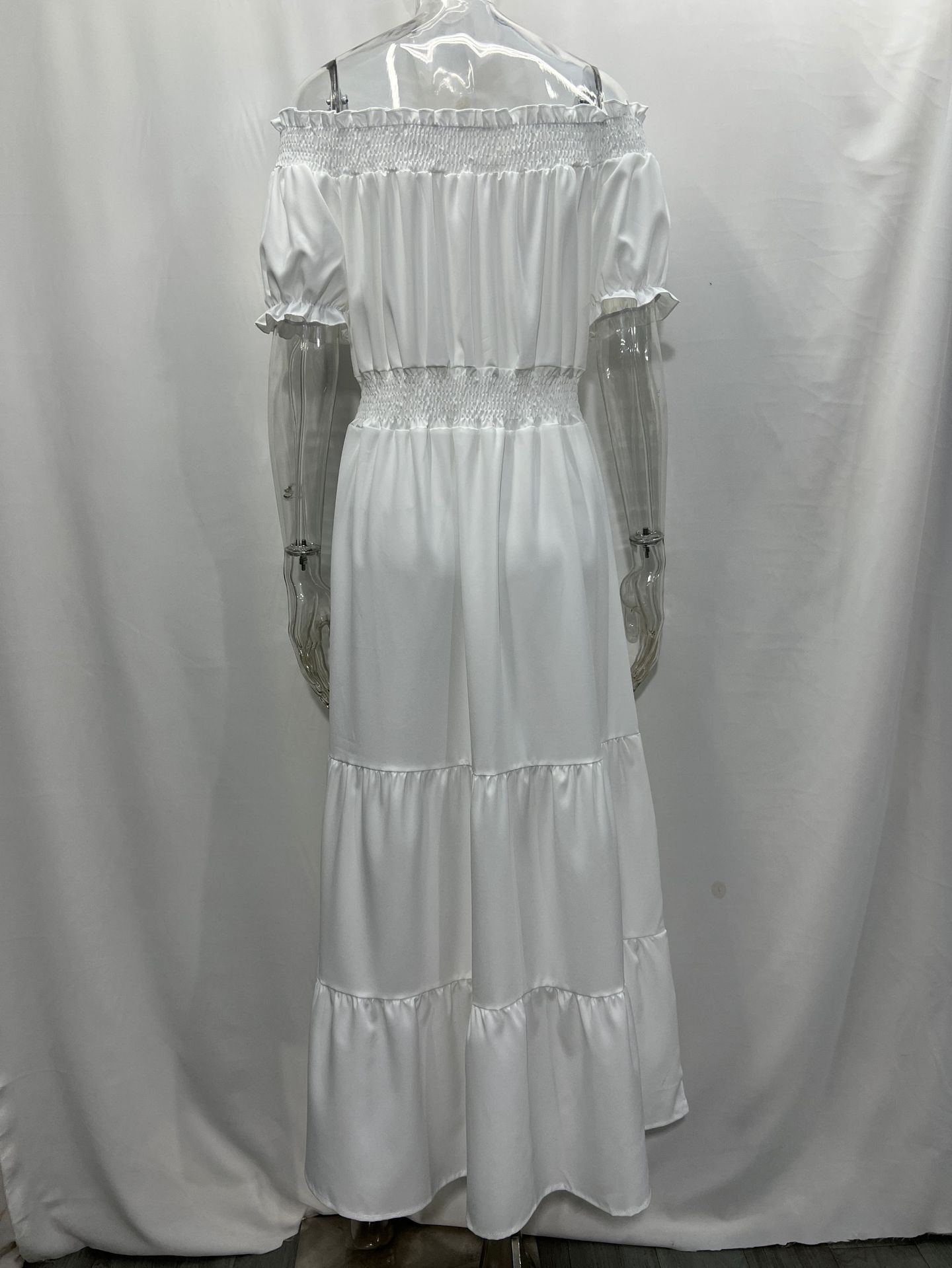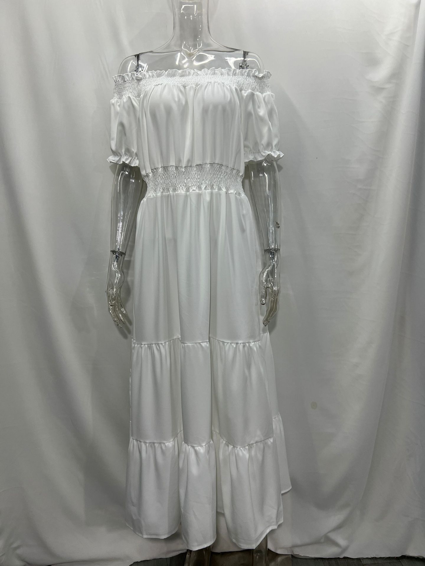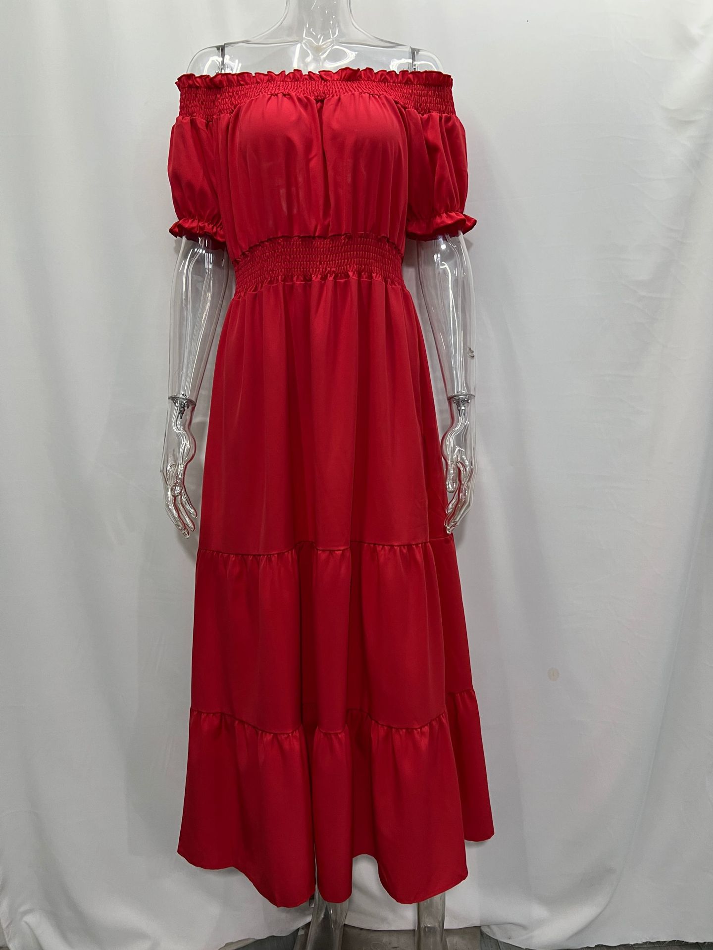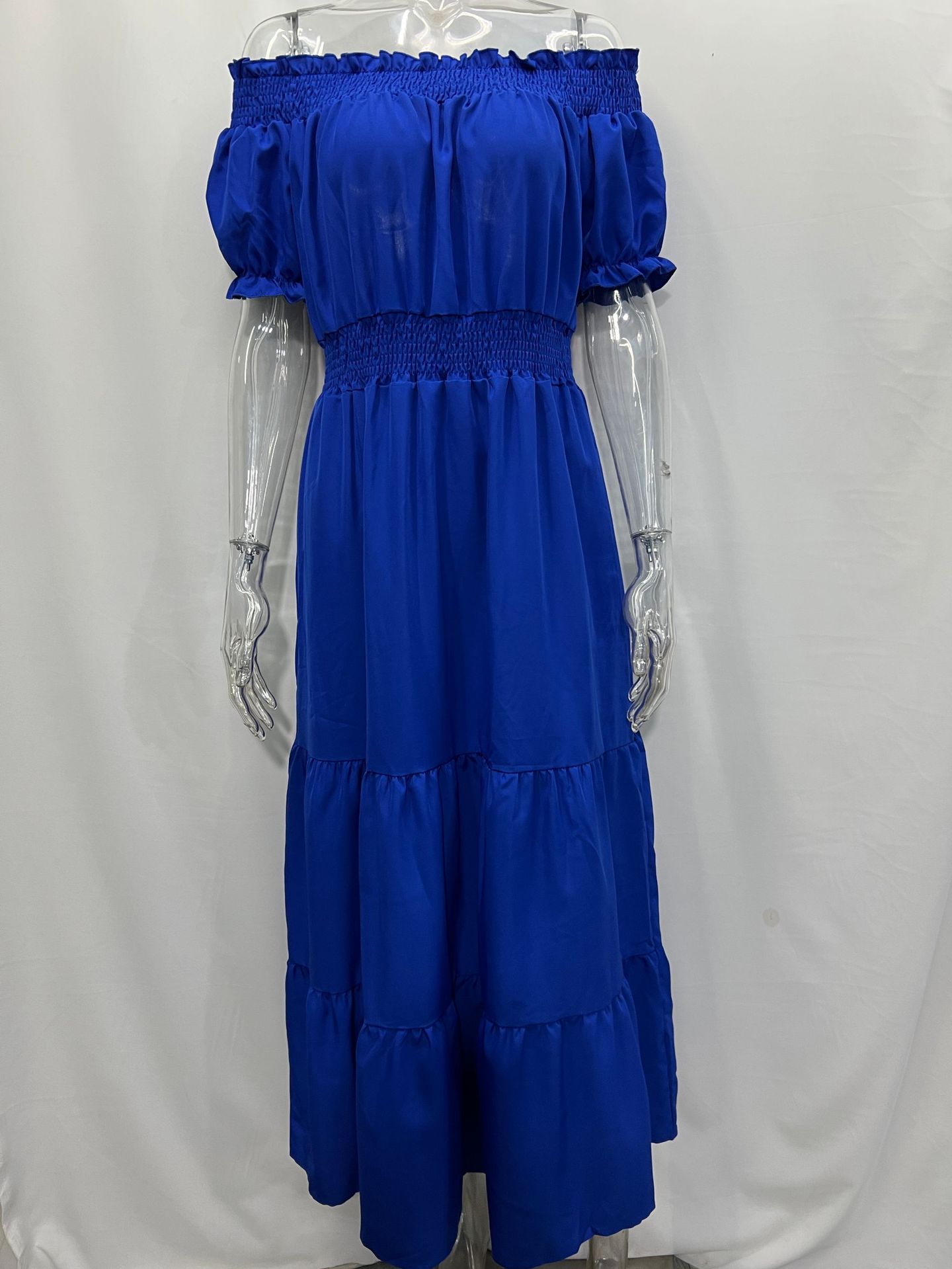Elegant Solid Color Boat Neck Short Sleeve Long Dress
