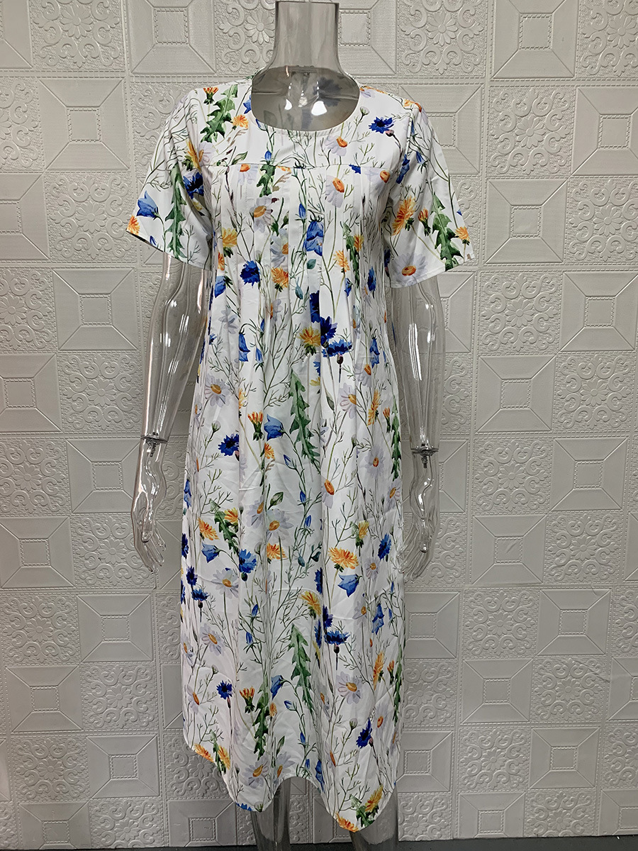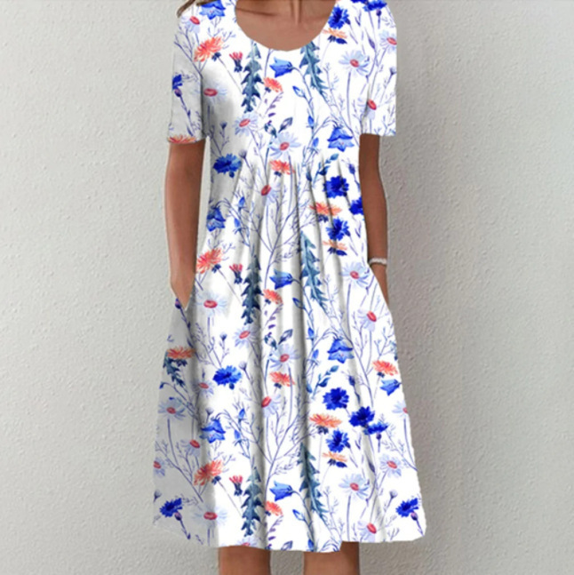 Elegant Swing Print Short Sleeve Dress