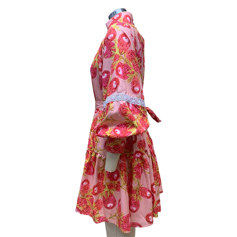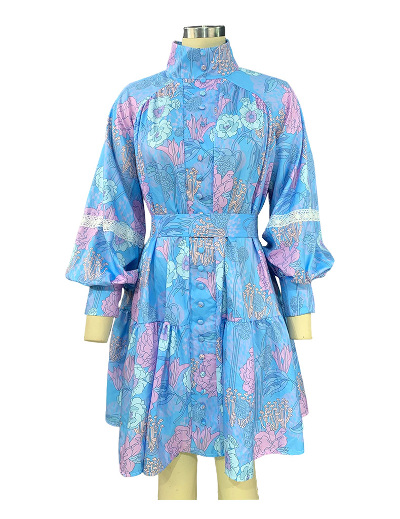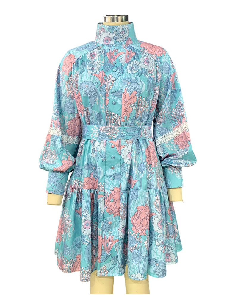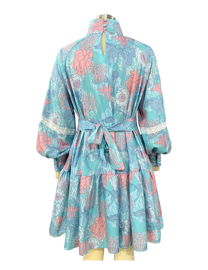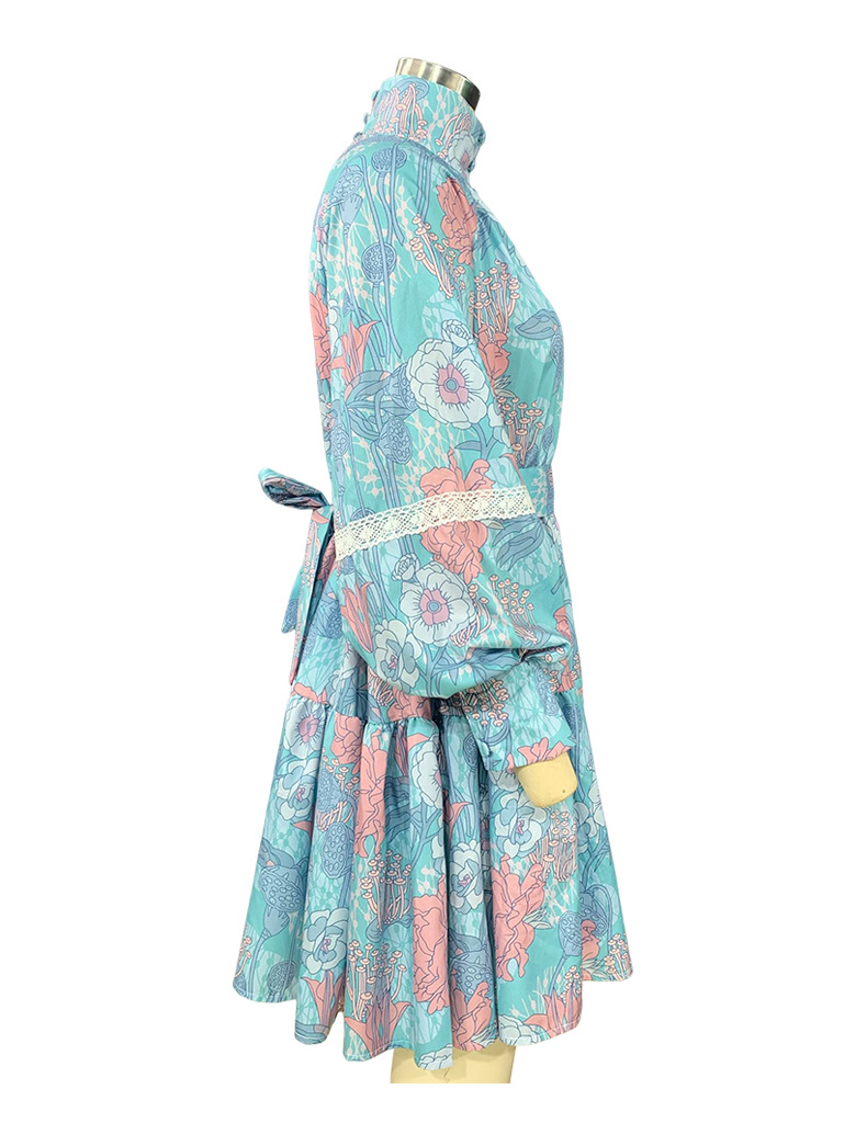 Fashion Long Sleeve High Neck Swing Print Dress