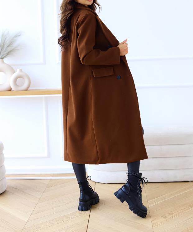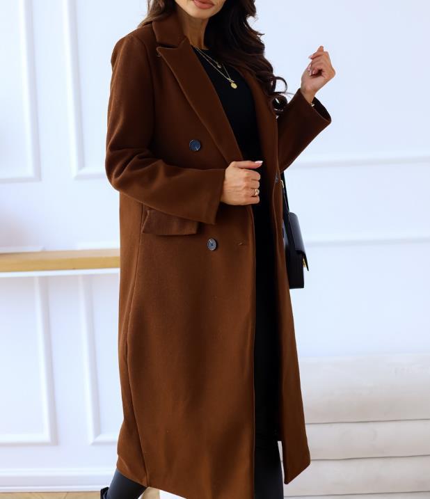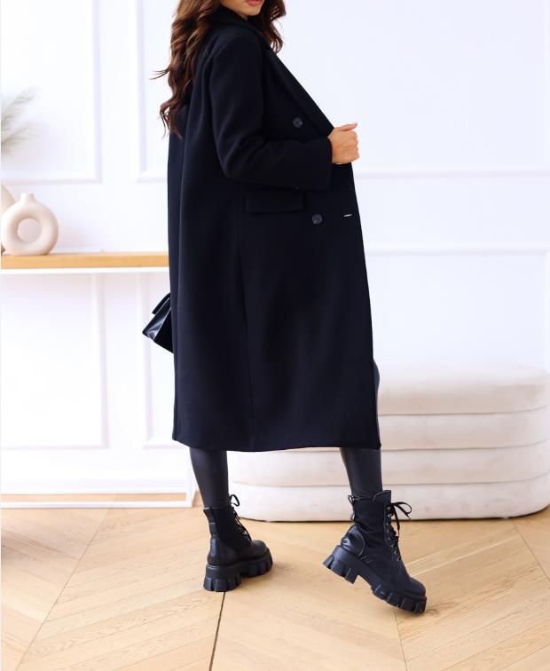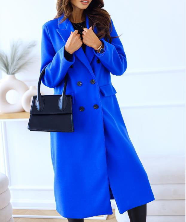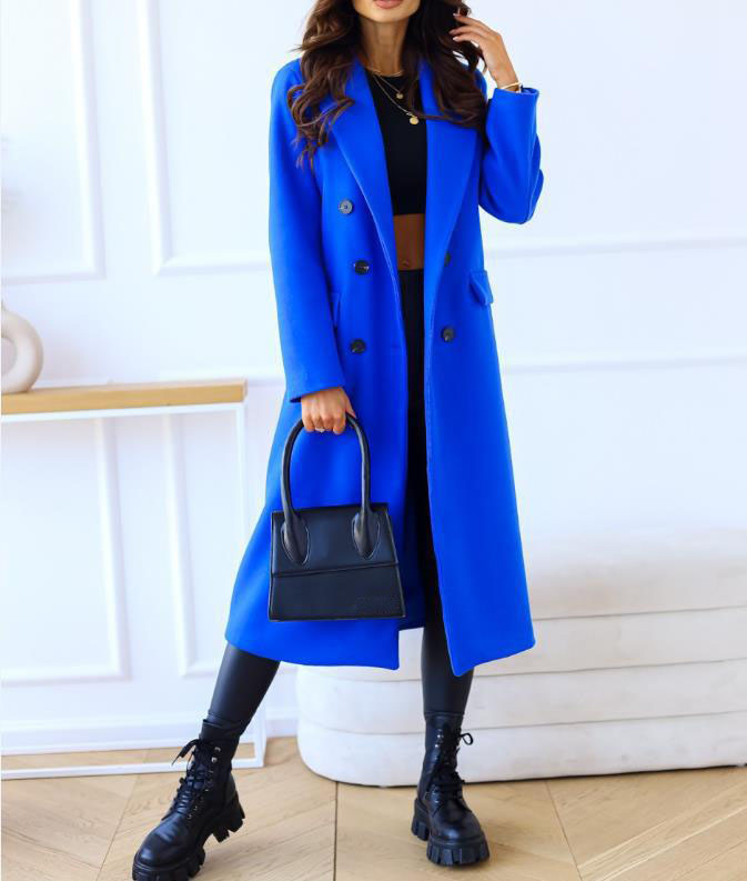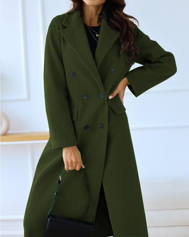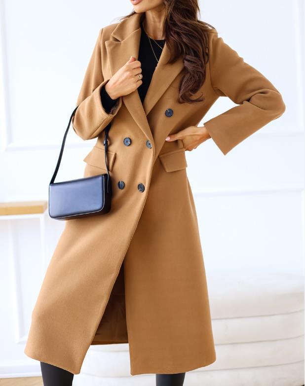 Fashion Simple Double Breasted Long Sleeve Lapel Button Coat