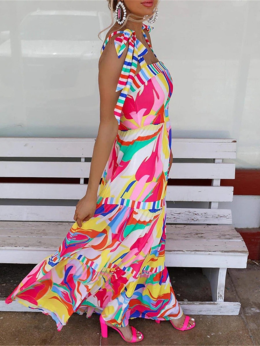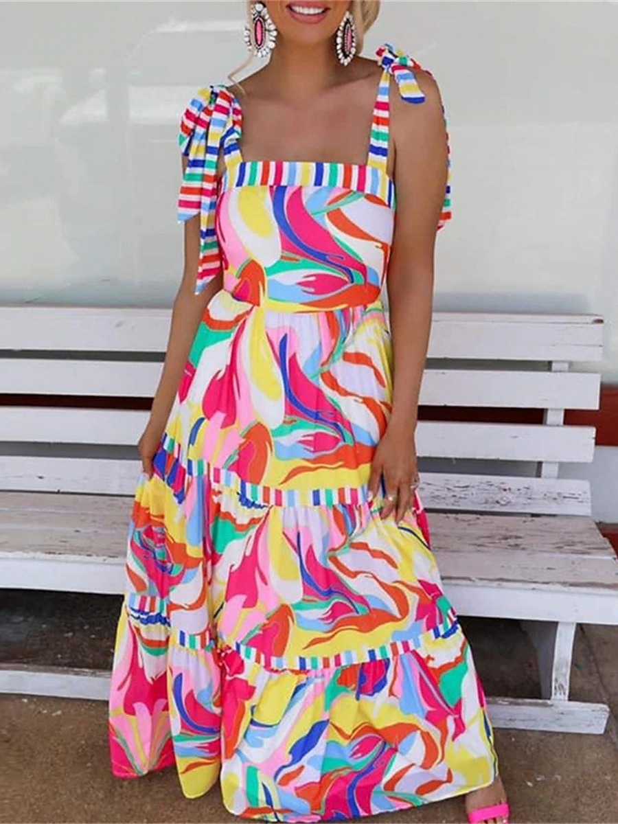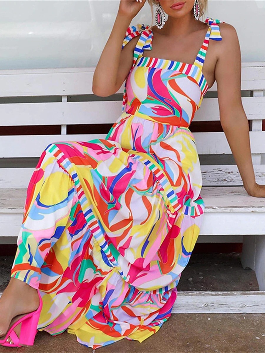 Holiday Print Sling Panel Swing Dress