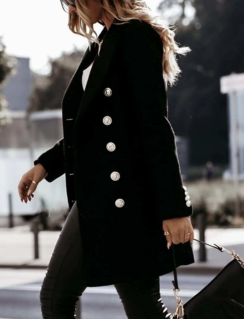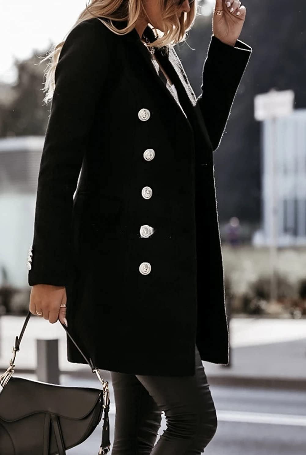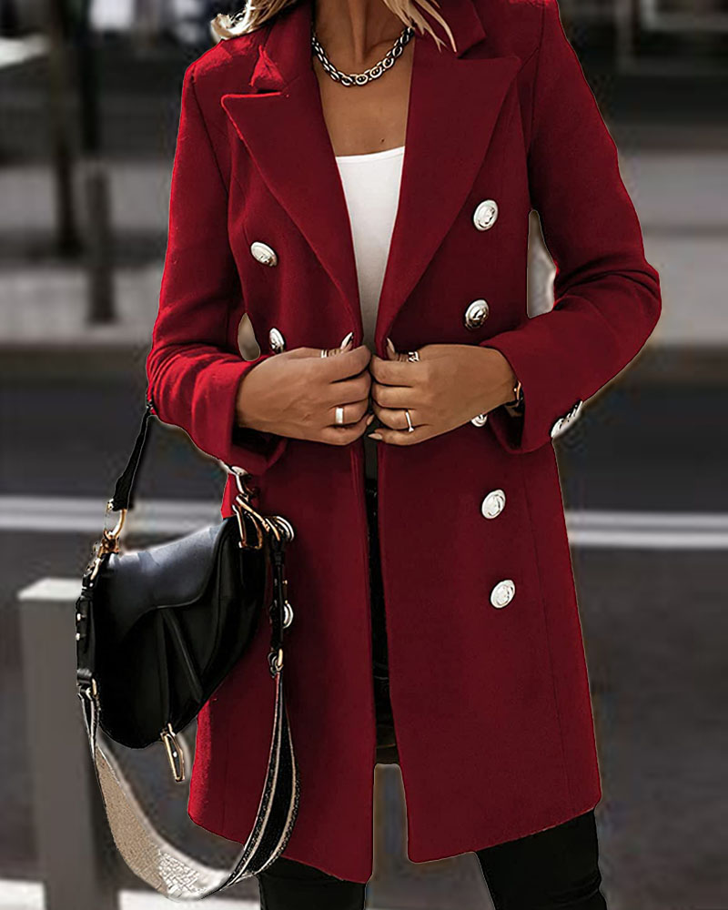 Long Sleeve Blazer Collar Double Breasted Cardigan Coat