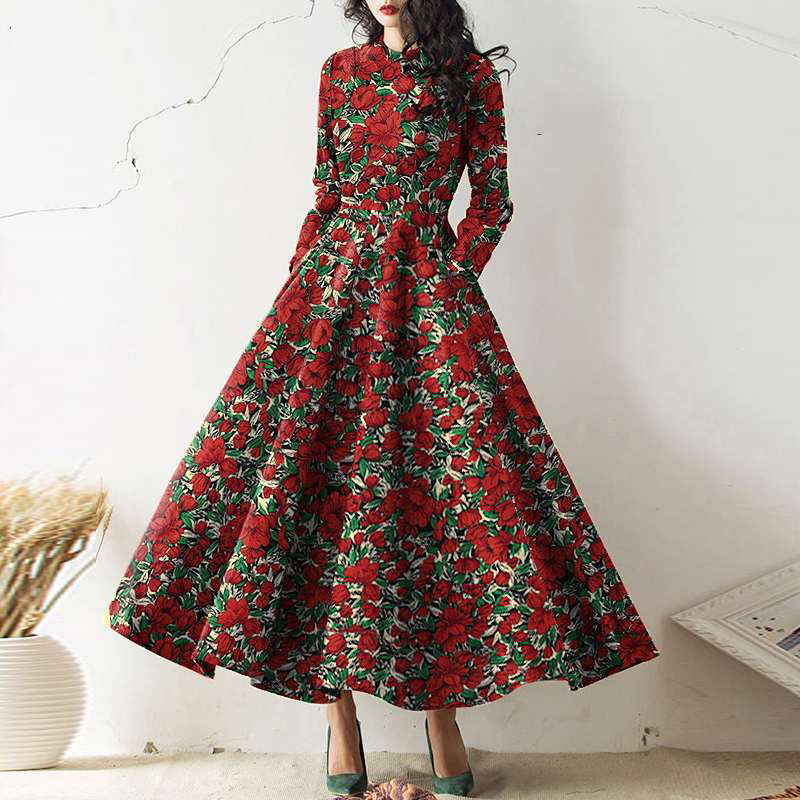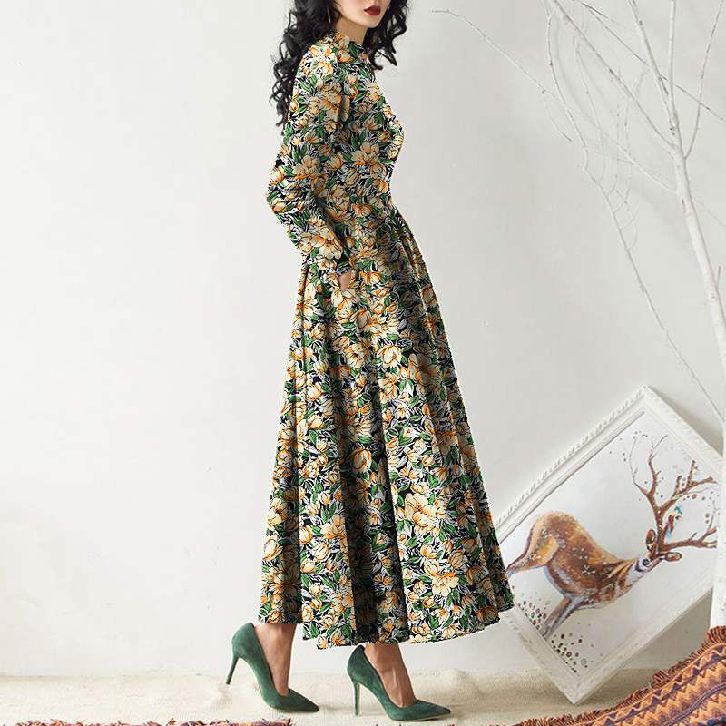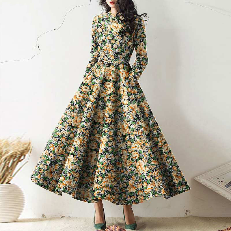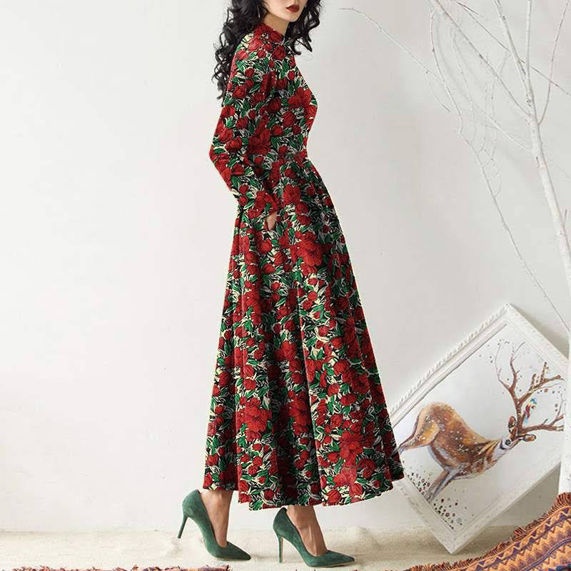 Long Sleeve Crewneck Pocket Print Maxi Dress