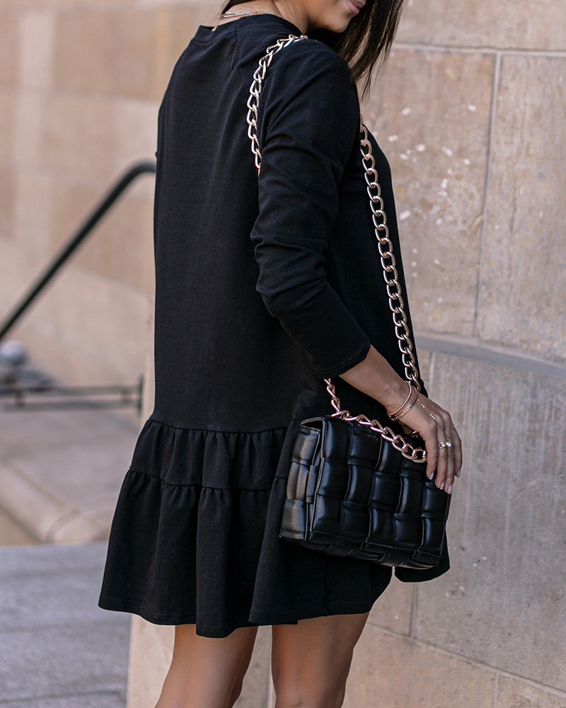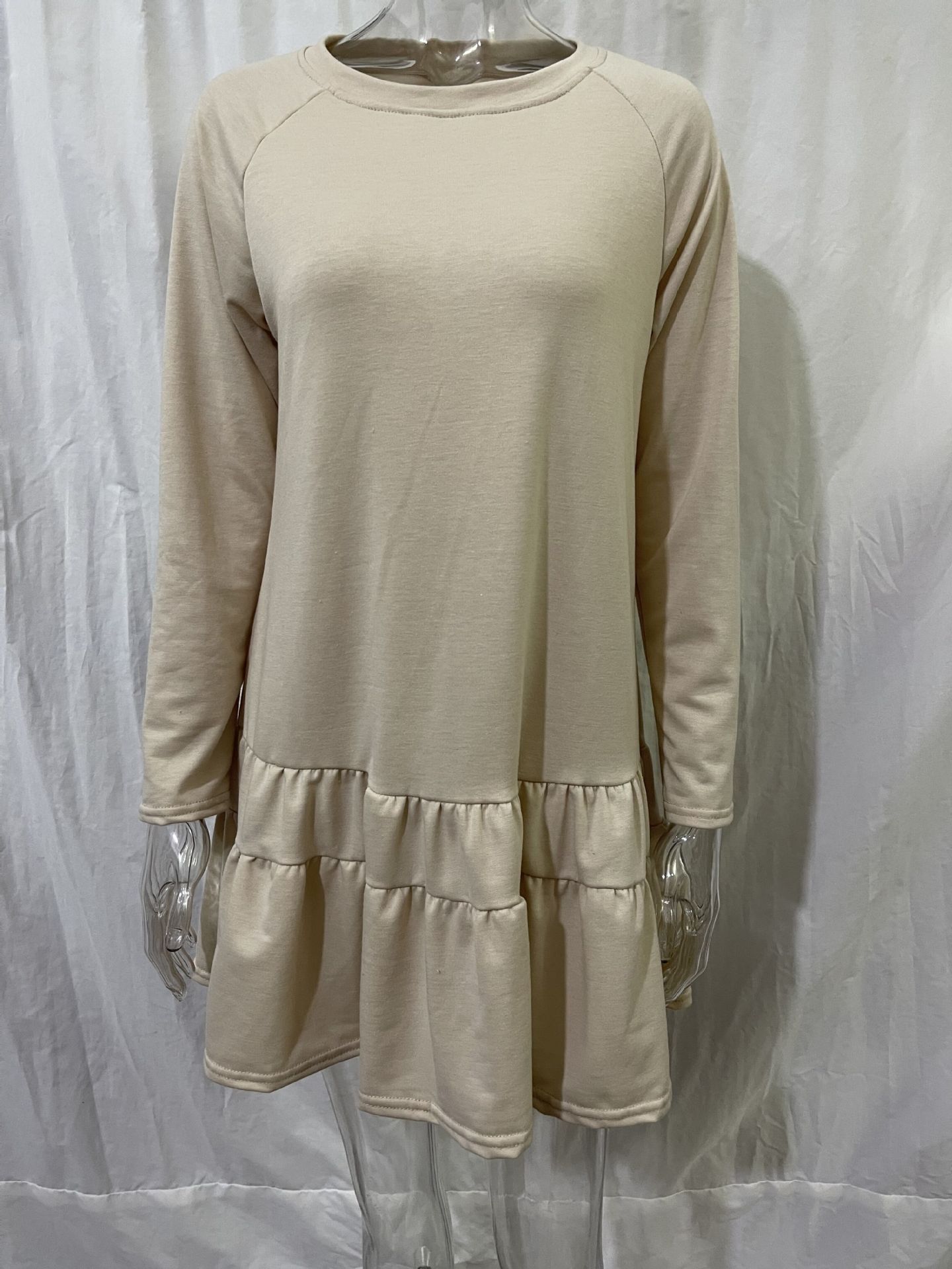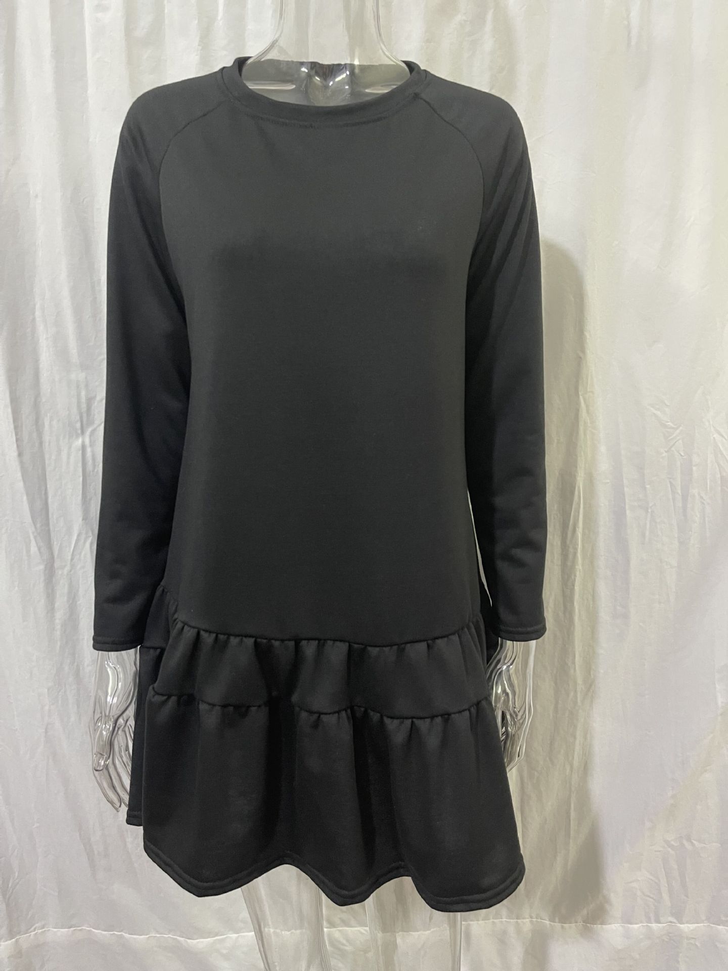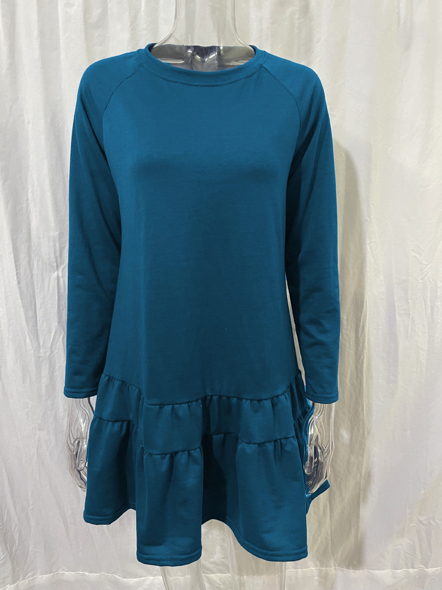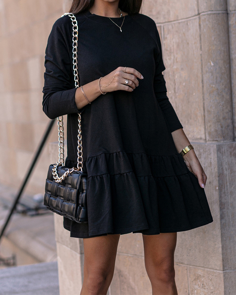 Long-Sleeve Home Loose Round Neck Ruffled Sweatshirt Dress