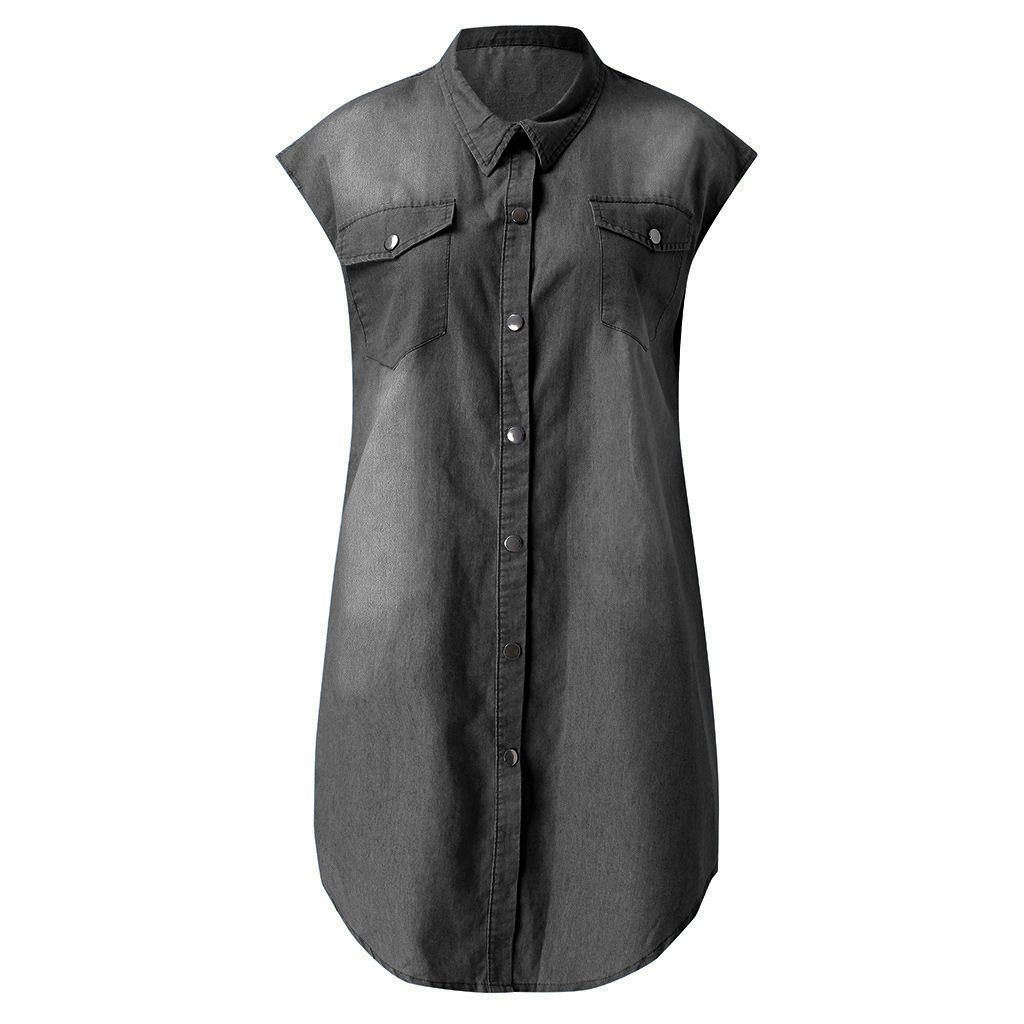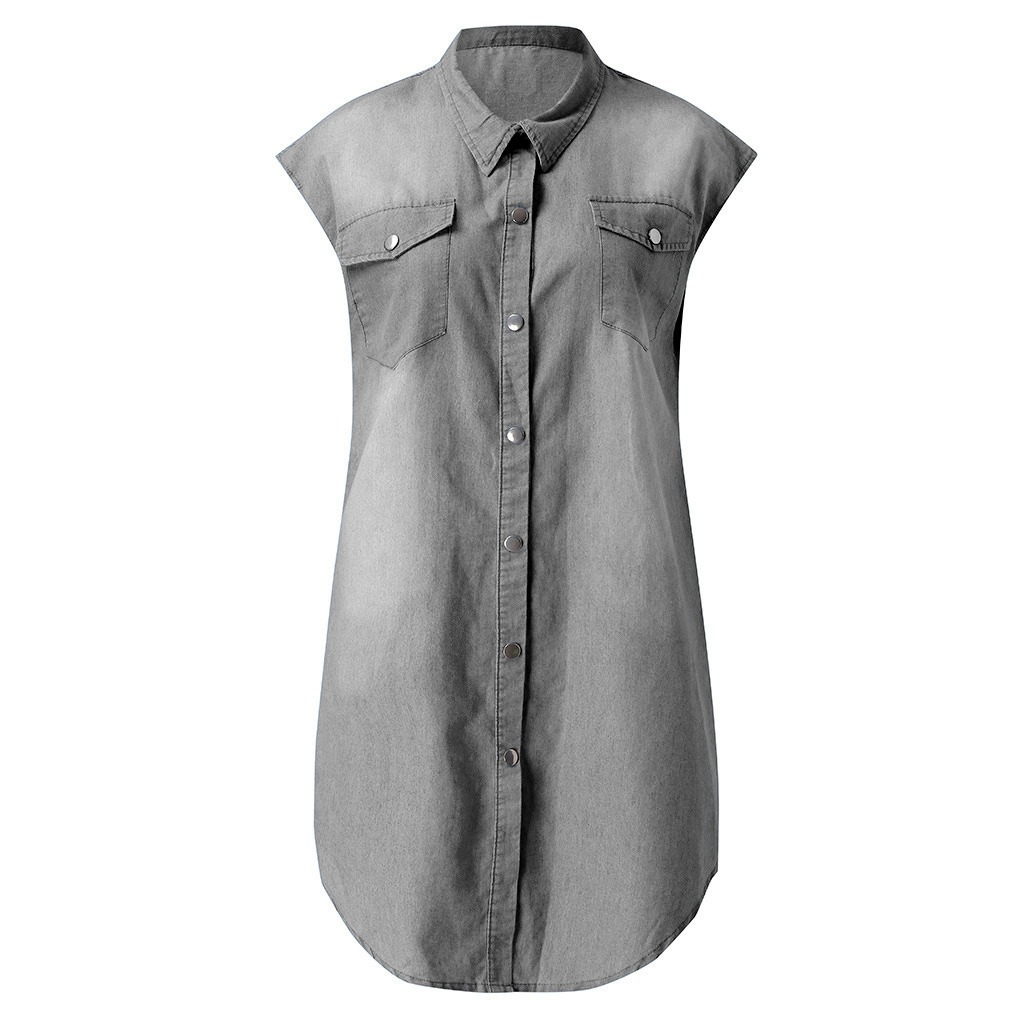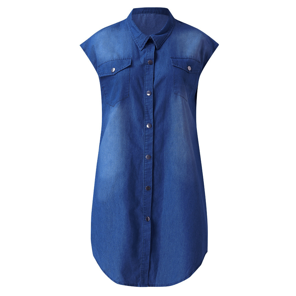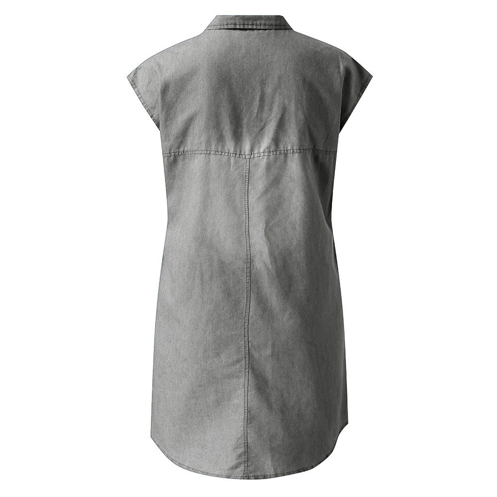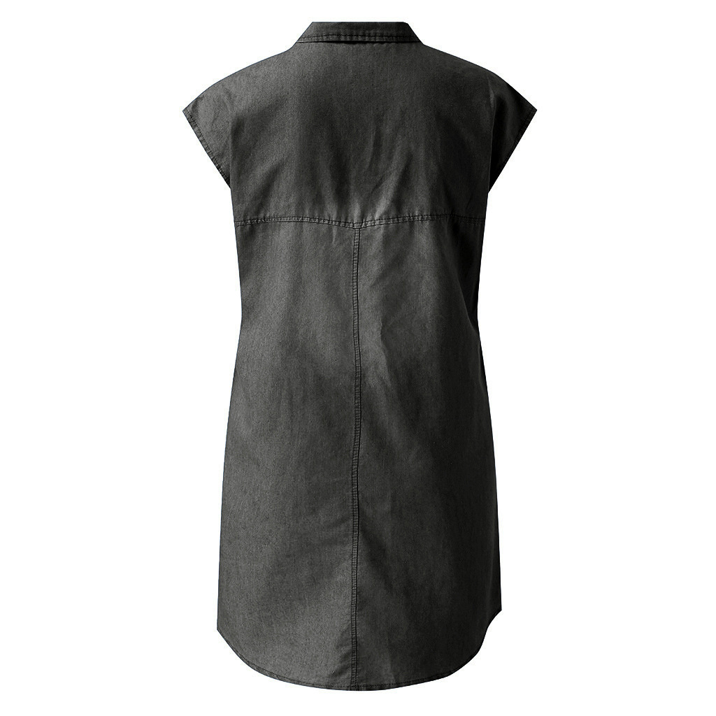 Pocket Button Short Sleeve Denim Dress