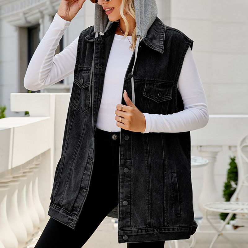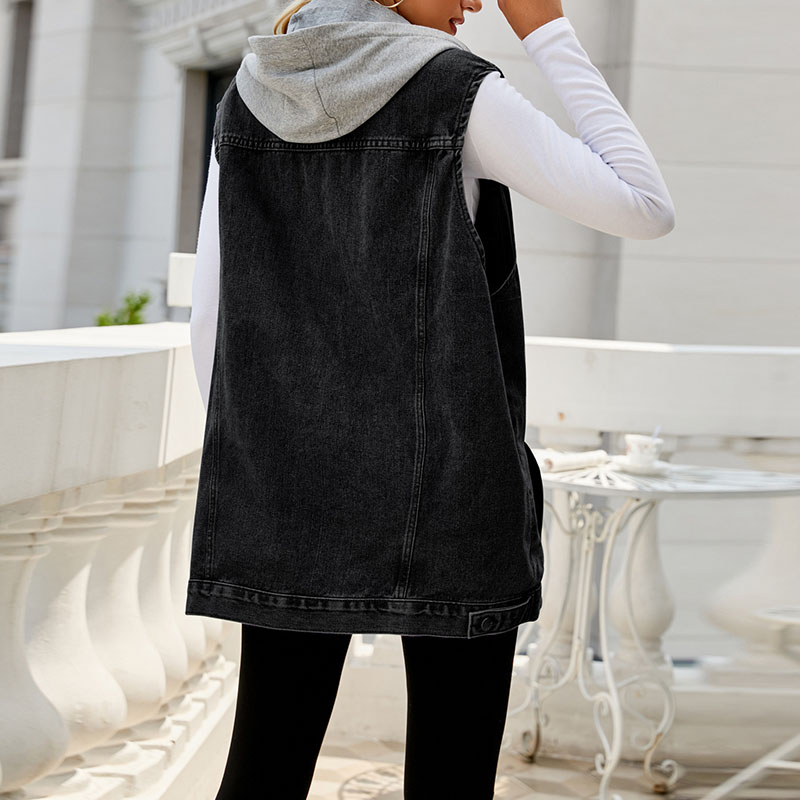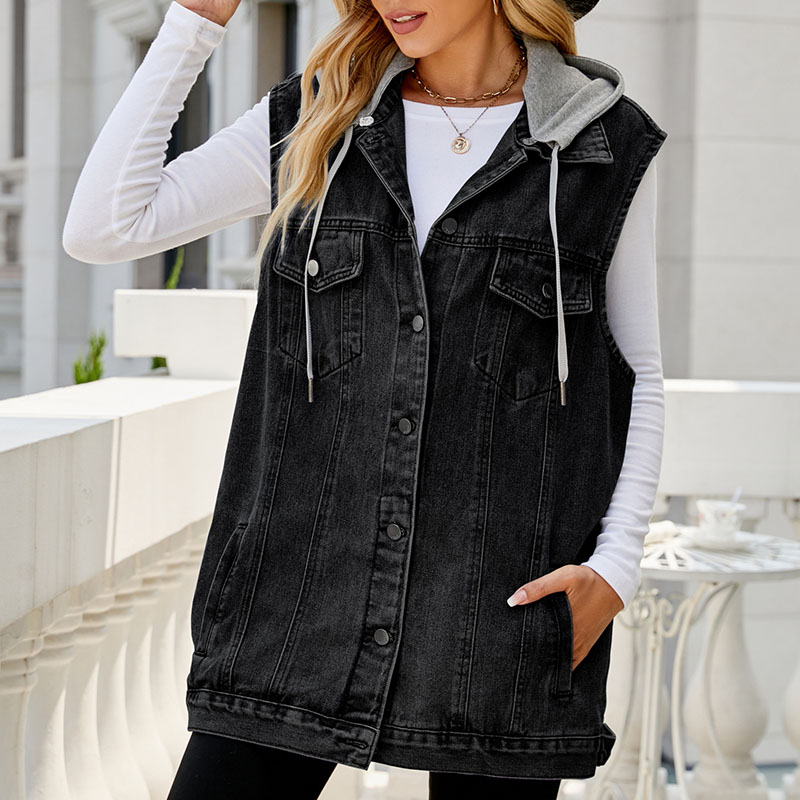Retro Loose Casual Detachable Hooded Denim Vest Jacket