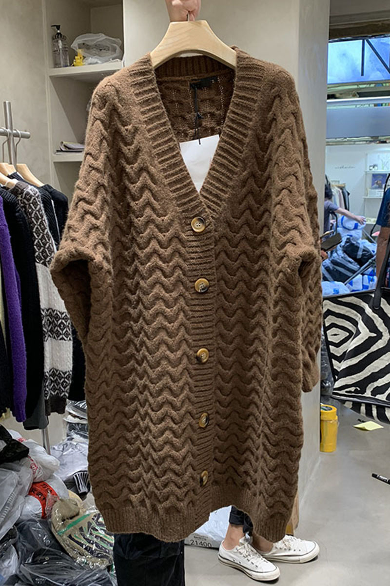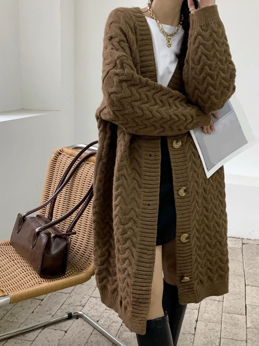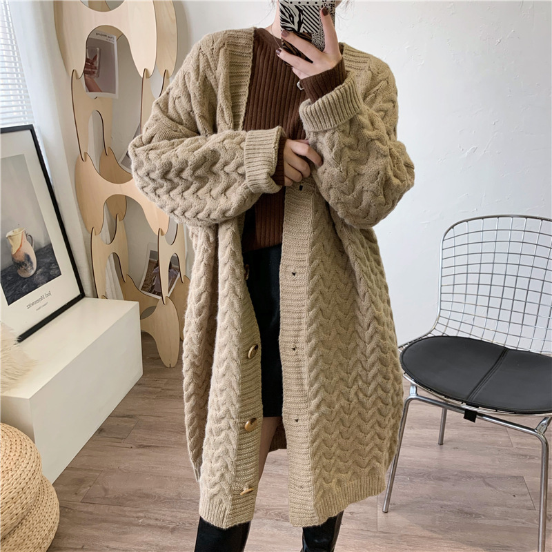 Retro Twist Sweater Women's Coat Loose Long Thick Knitted Cardigan