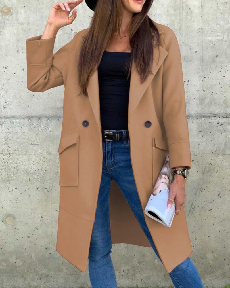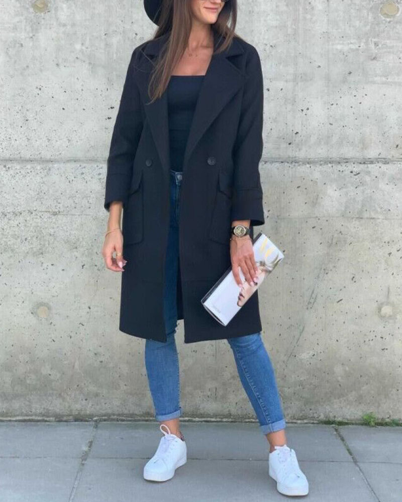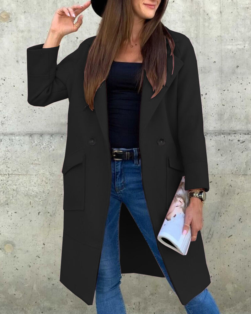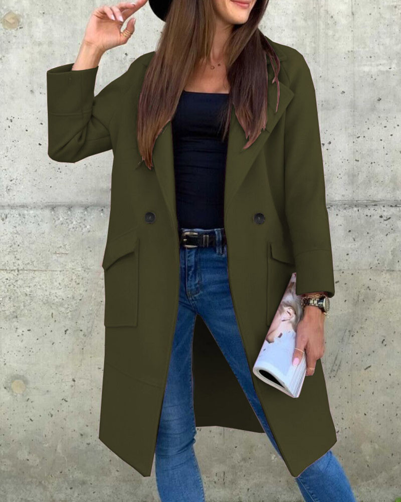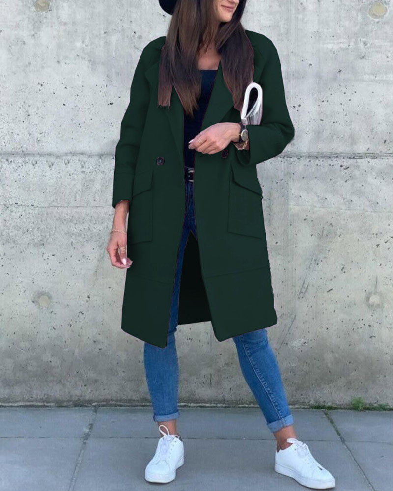 Solid Color Long Sleeve Blazer Collar Button Pocket Coat