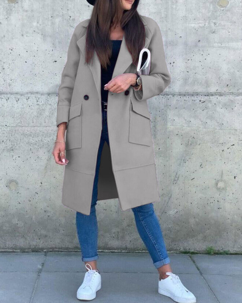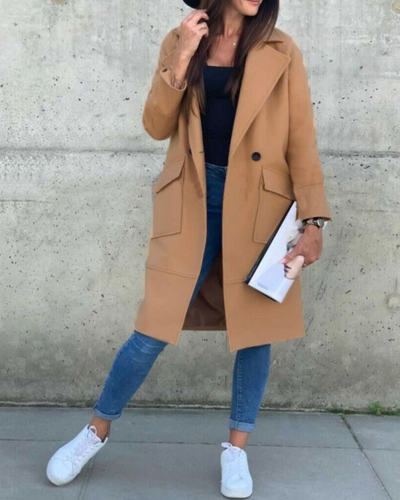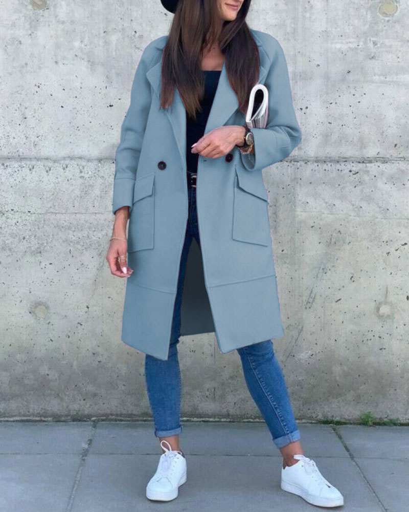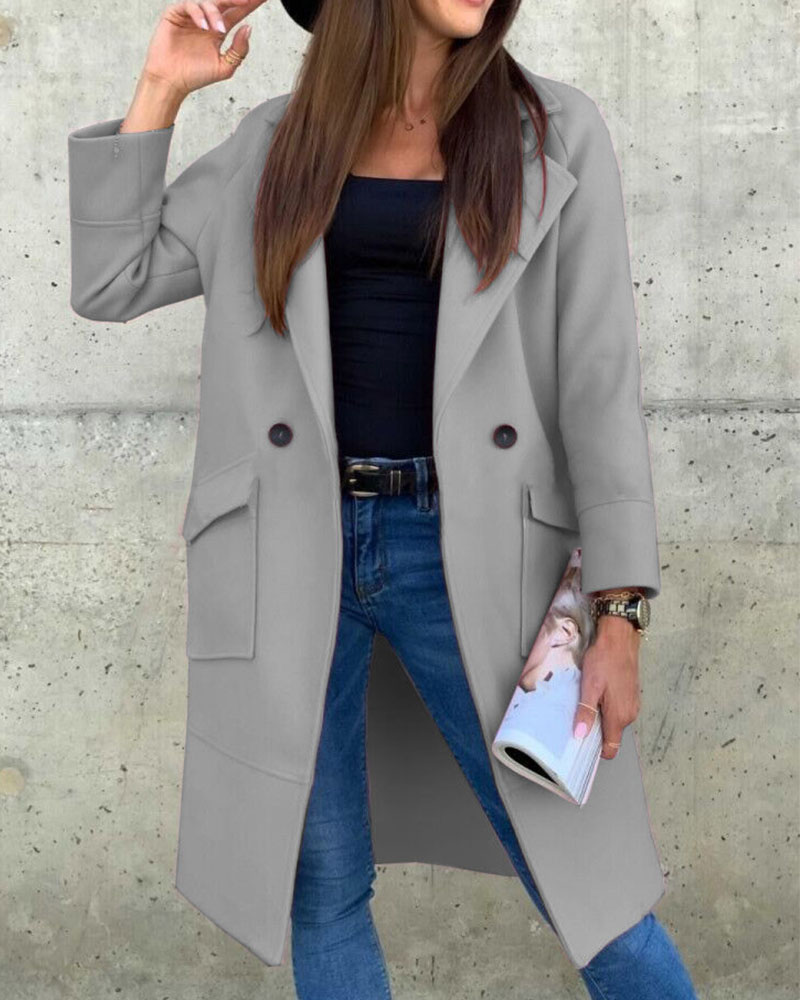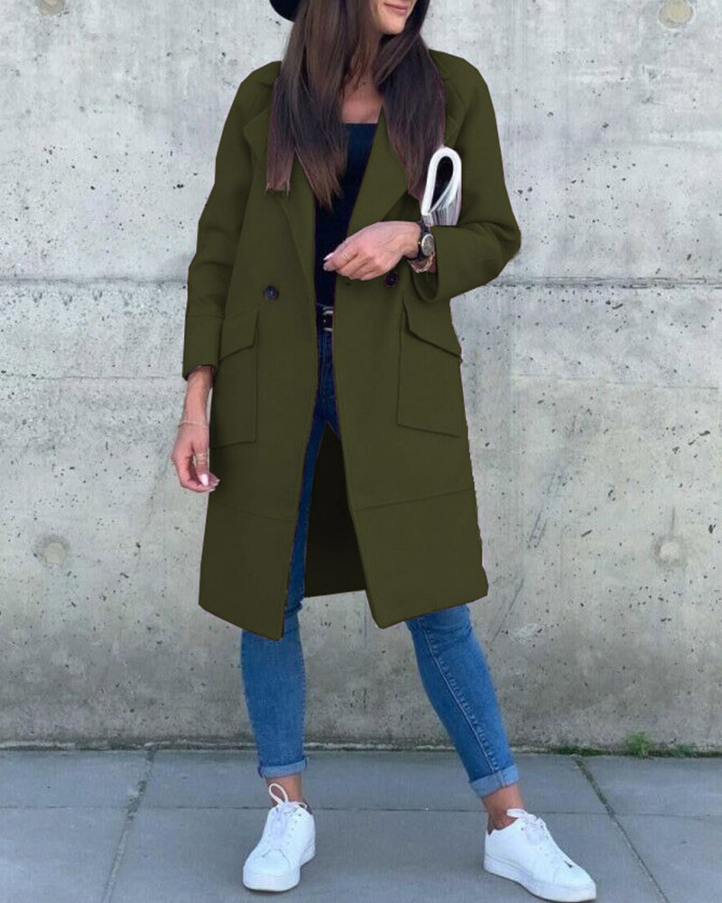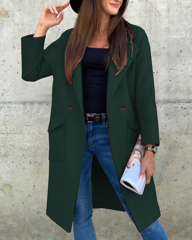 Solid Color Long Sleeve Blazer Collar Button Pocket Coat