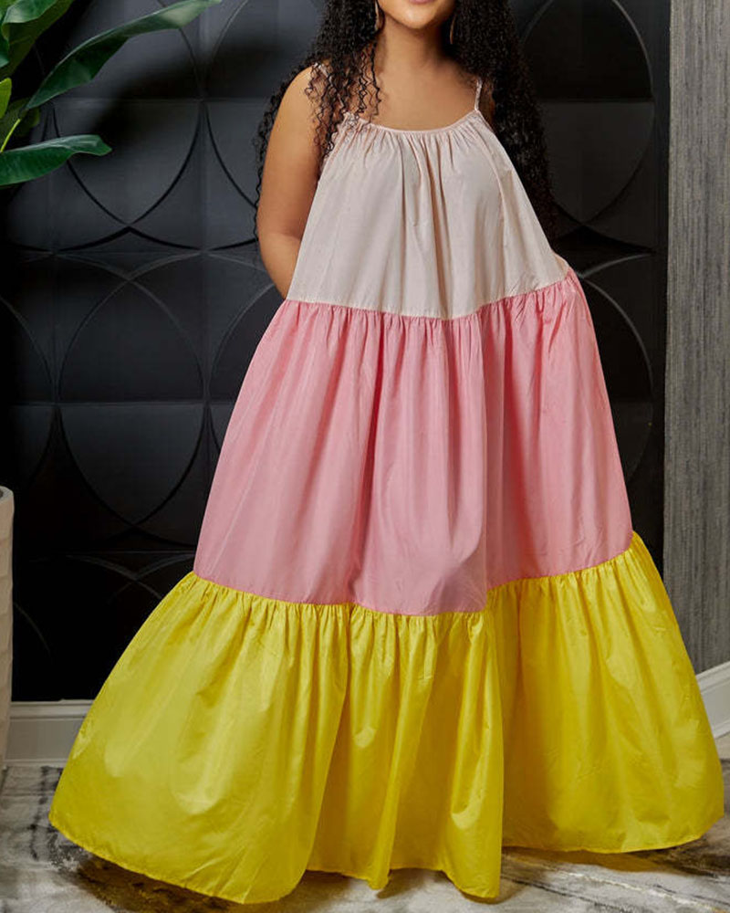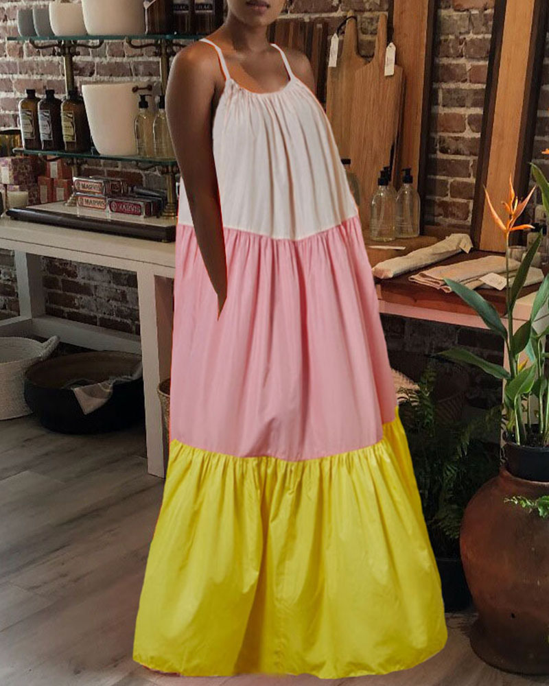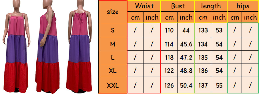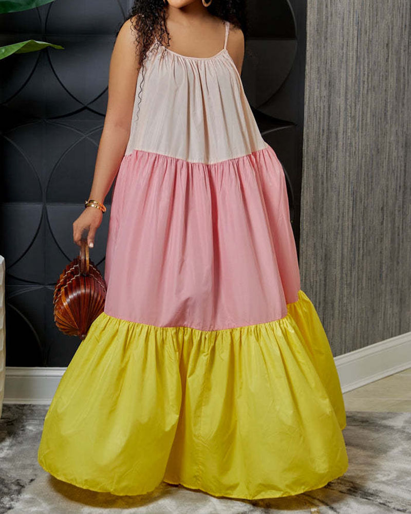 Stitching Sexy Sleeveless Contrast Color Long Swing Dress