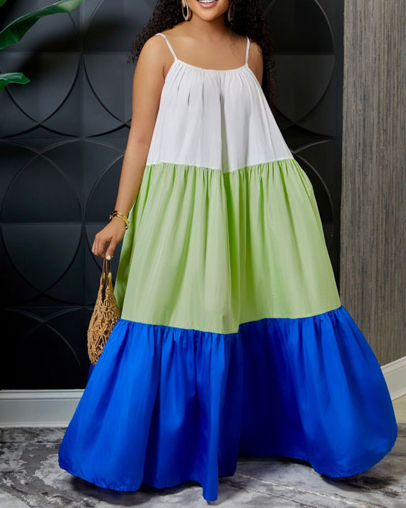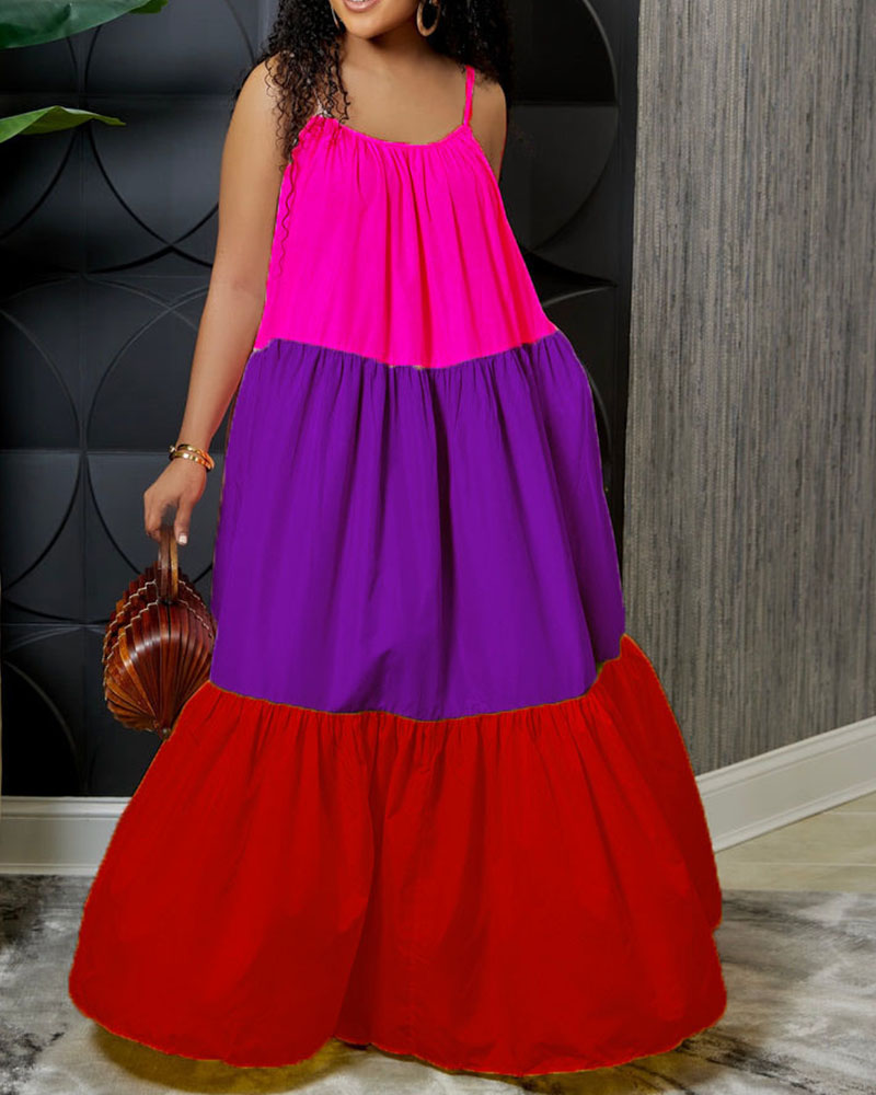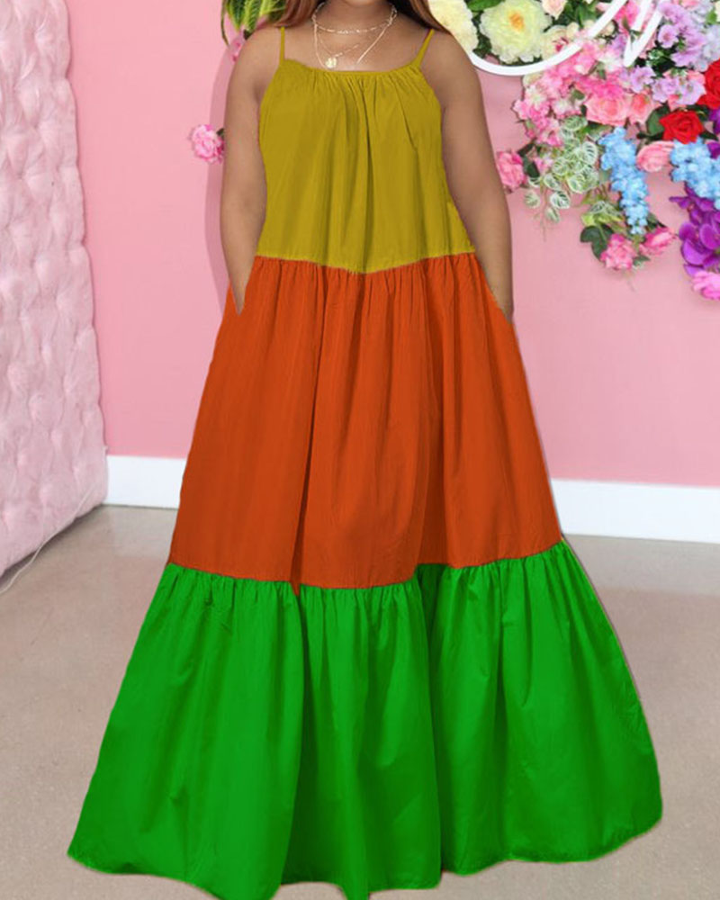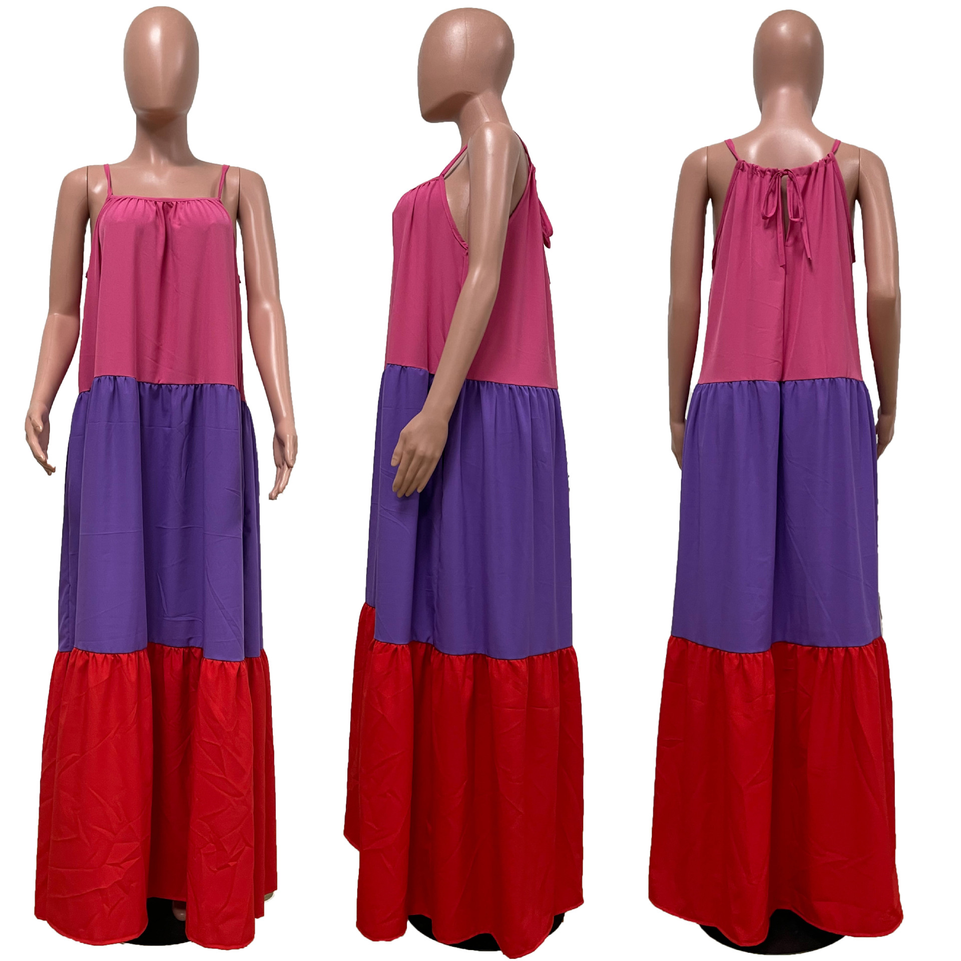 Stitching Sexy Sleeveless Contrast Color Long Swing Dress