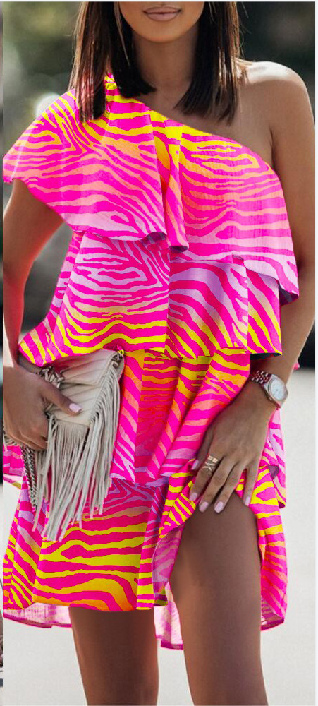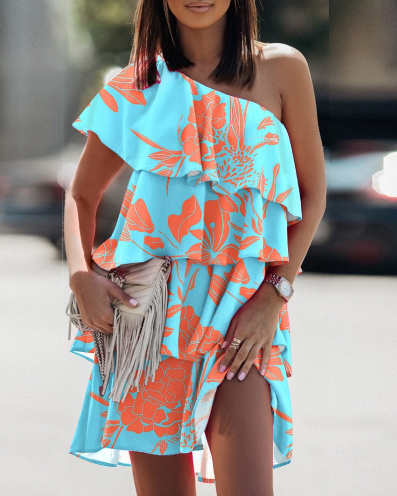 Summer Outfits Off-Shoulder Ruffled Casual Print Dress