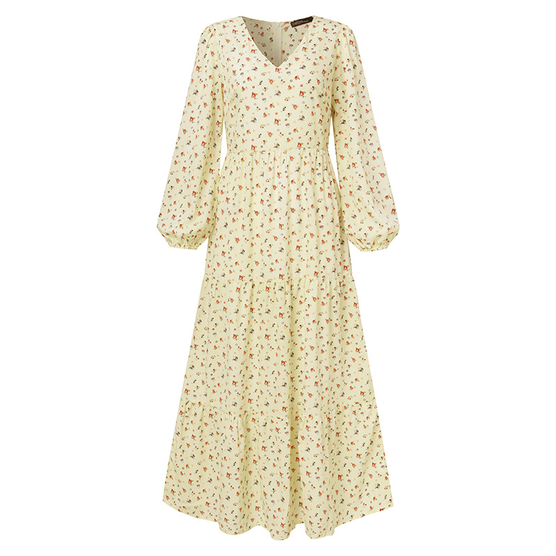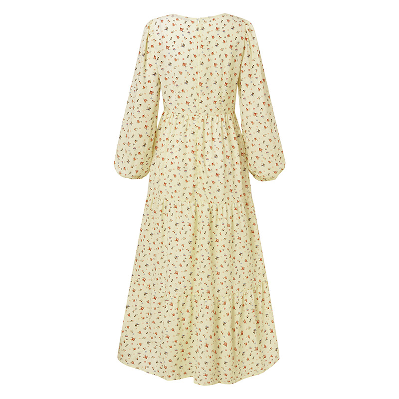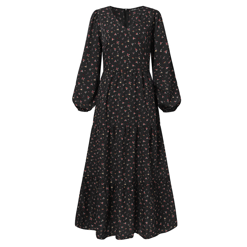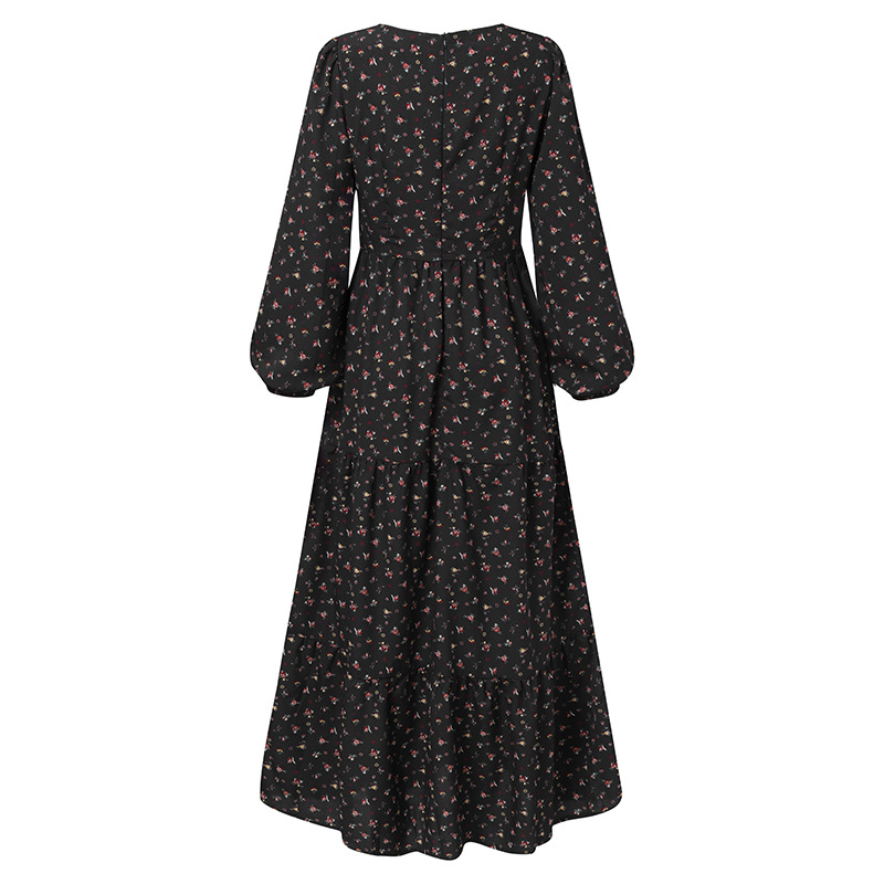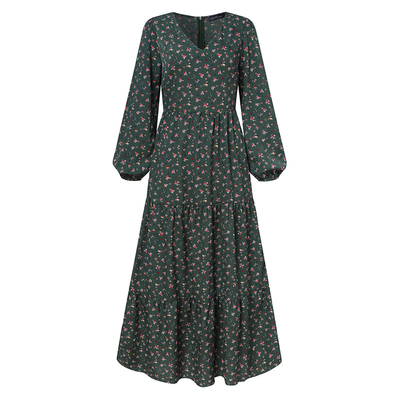Vintage Floral Print V-neck Swing Dress