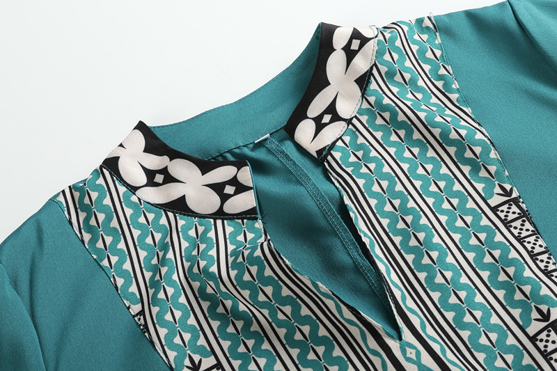 Vintage Print Deep V Neck Dress