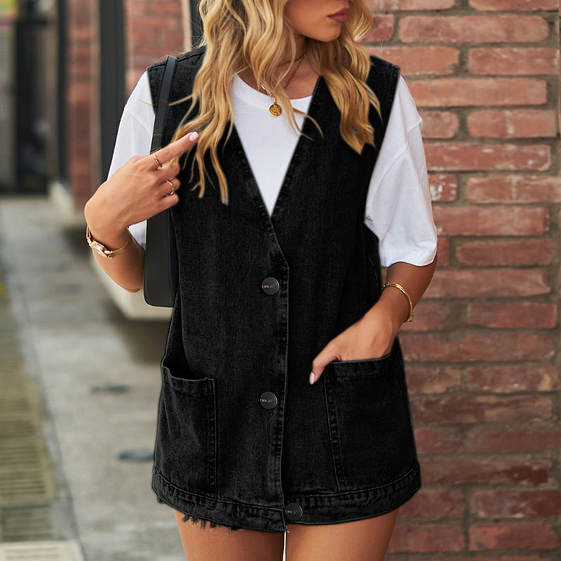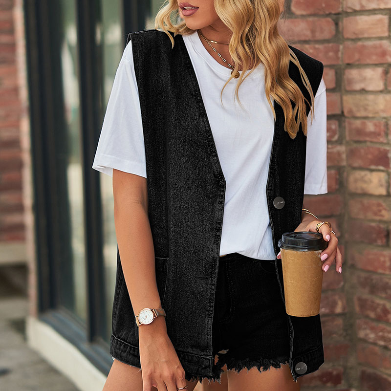 Women's Fashion Denim Vest Trendy Denim Sleeveless Vest