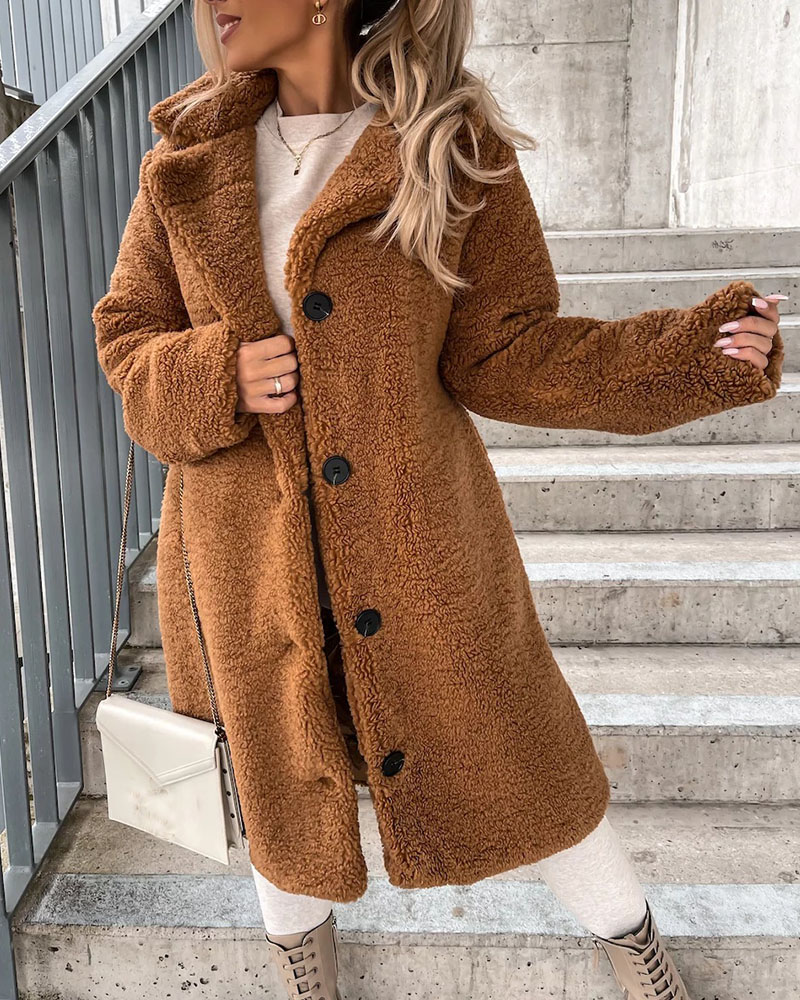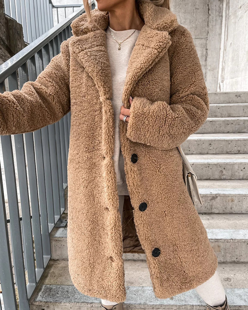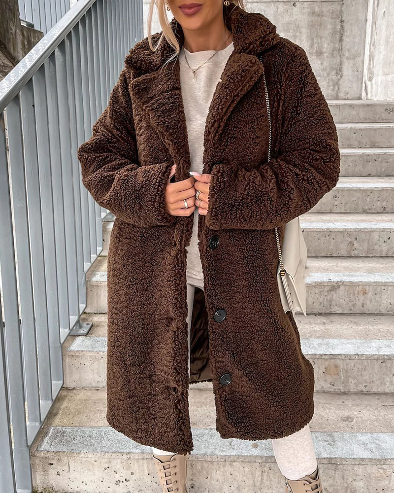 Women's Long Sleeve Lapel Plush Top Long Coat