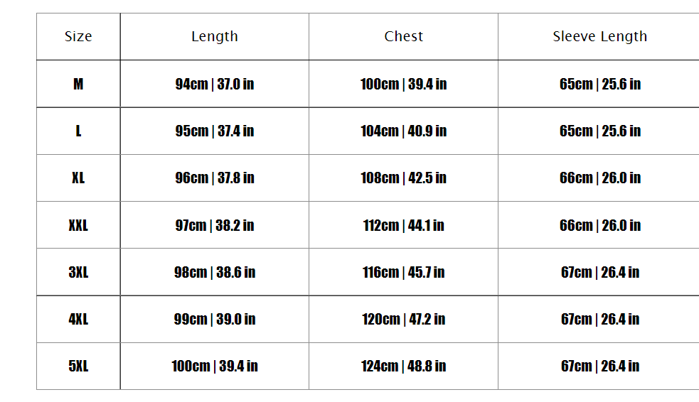 Size chart: