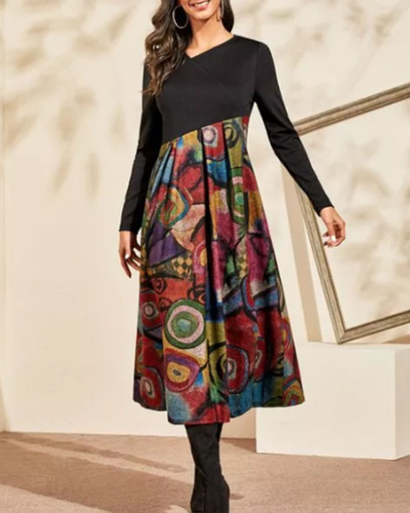 Women's Printed Long Sleeve Elegant Slim Long Dress(I)